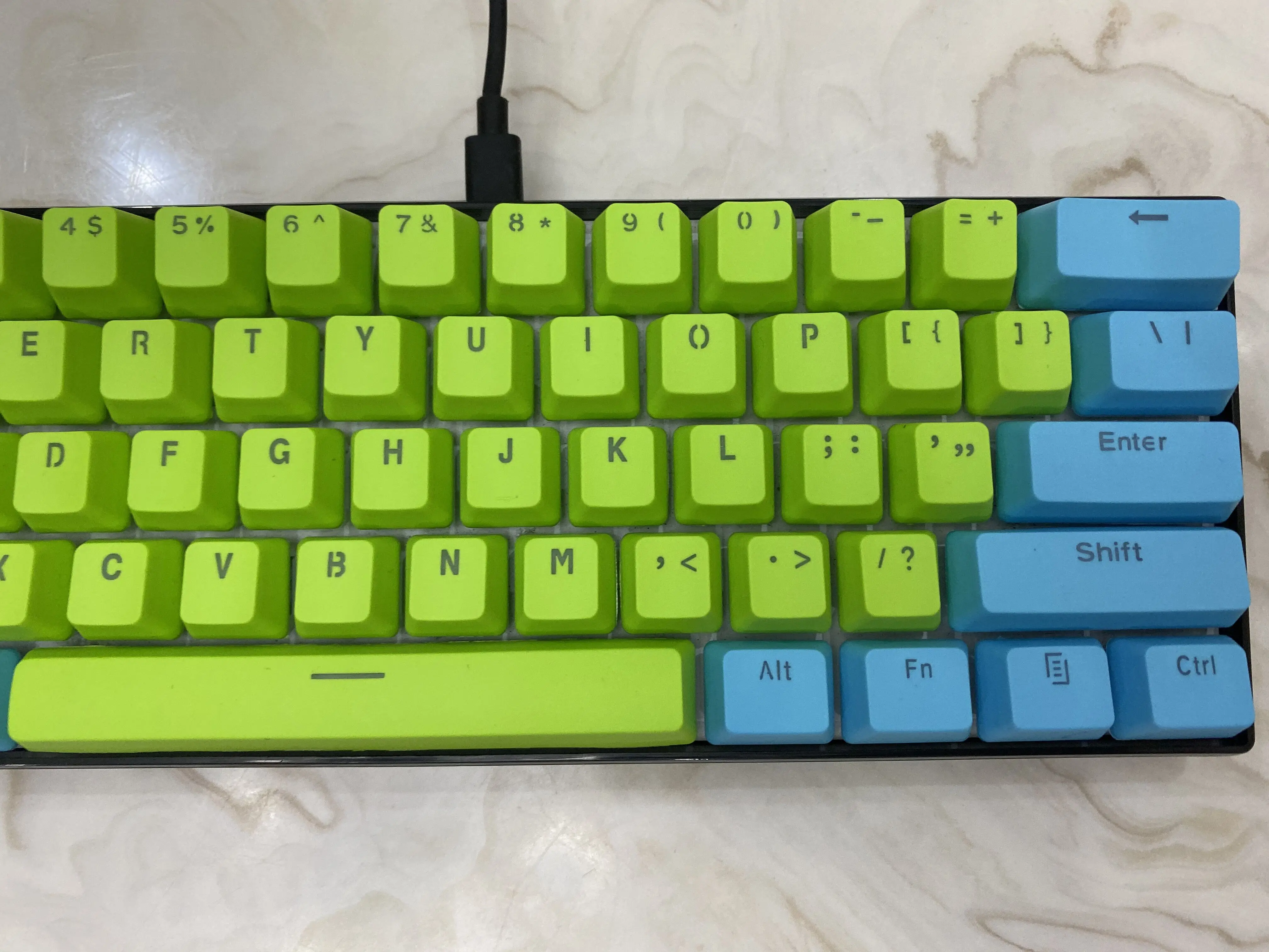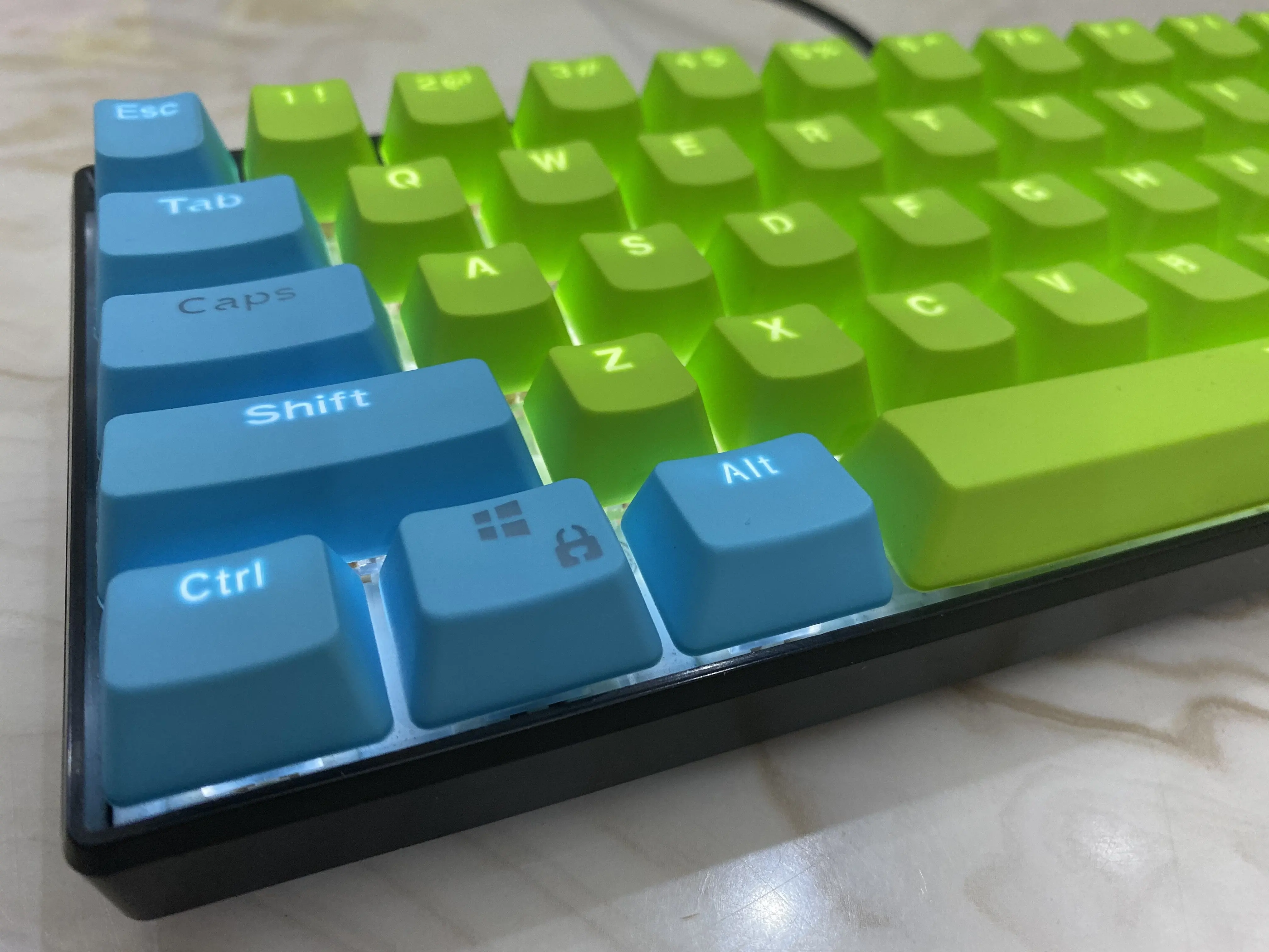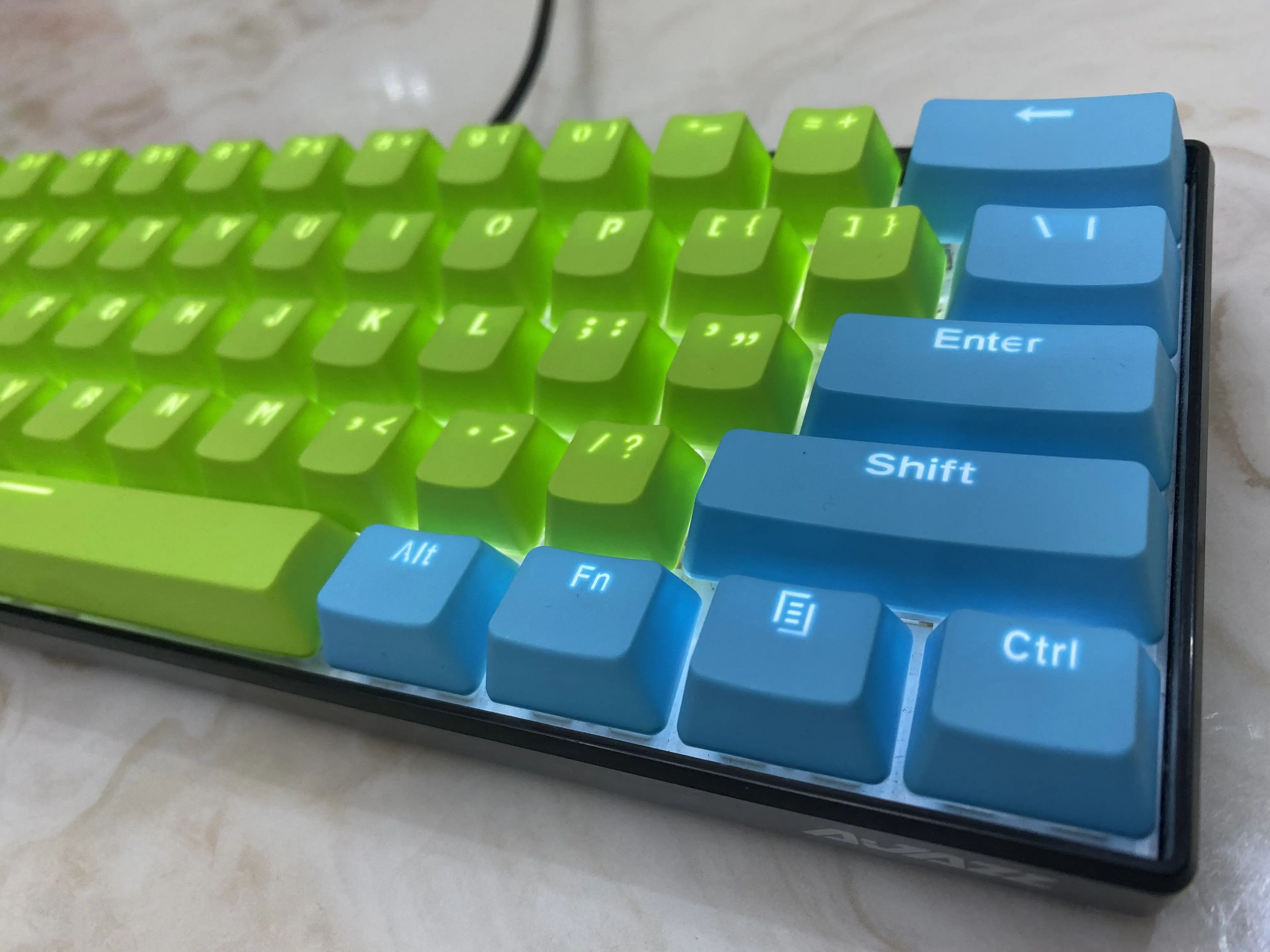 Comprar (Se venden solo teclas) Teclas RK 61 de color azul claro y verde, material PBT, altura OEM, teclas de teclado mecánico de dos colores retroiluminadas