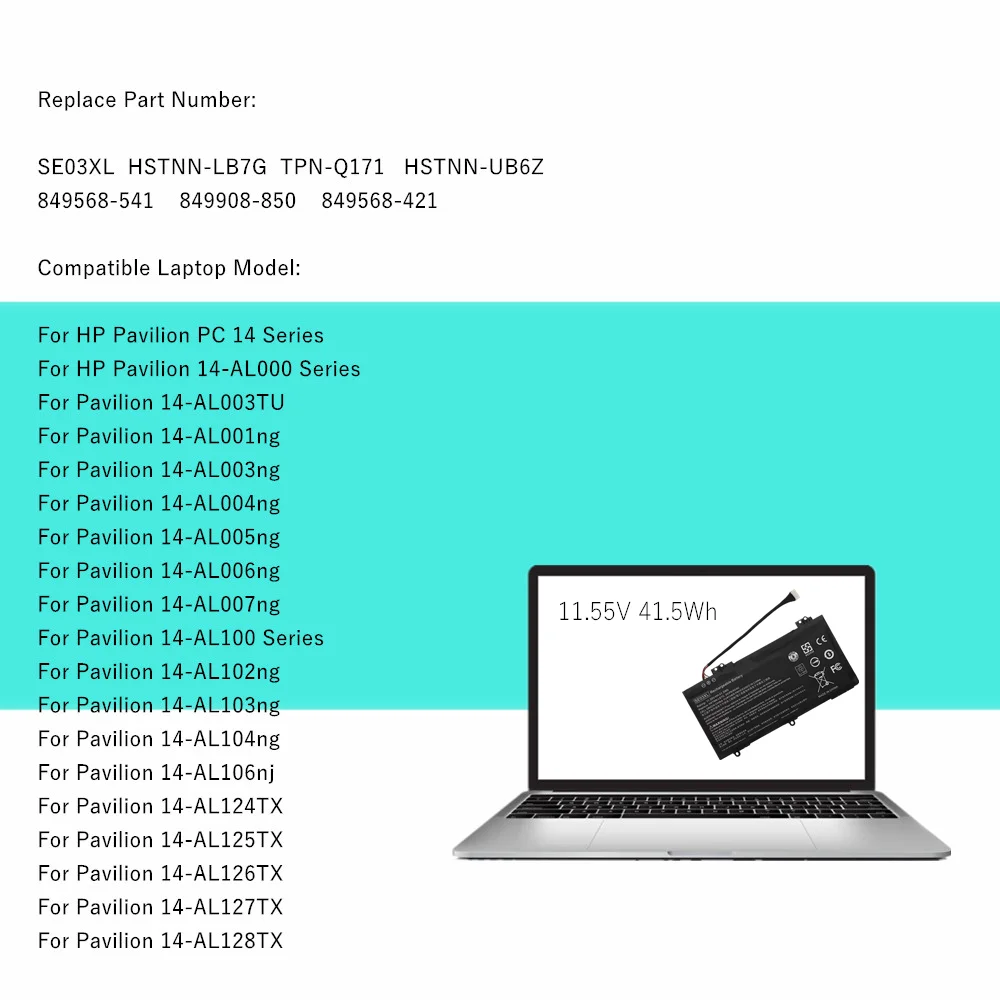 Comprar SE03XL batería del ordenador portátil para HP Pavilion PC 14 14-AL000 14-AL003TU 14-AL100 HSTNN-LB7G TPN-Q171 HSTNN-UB6Z
