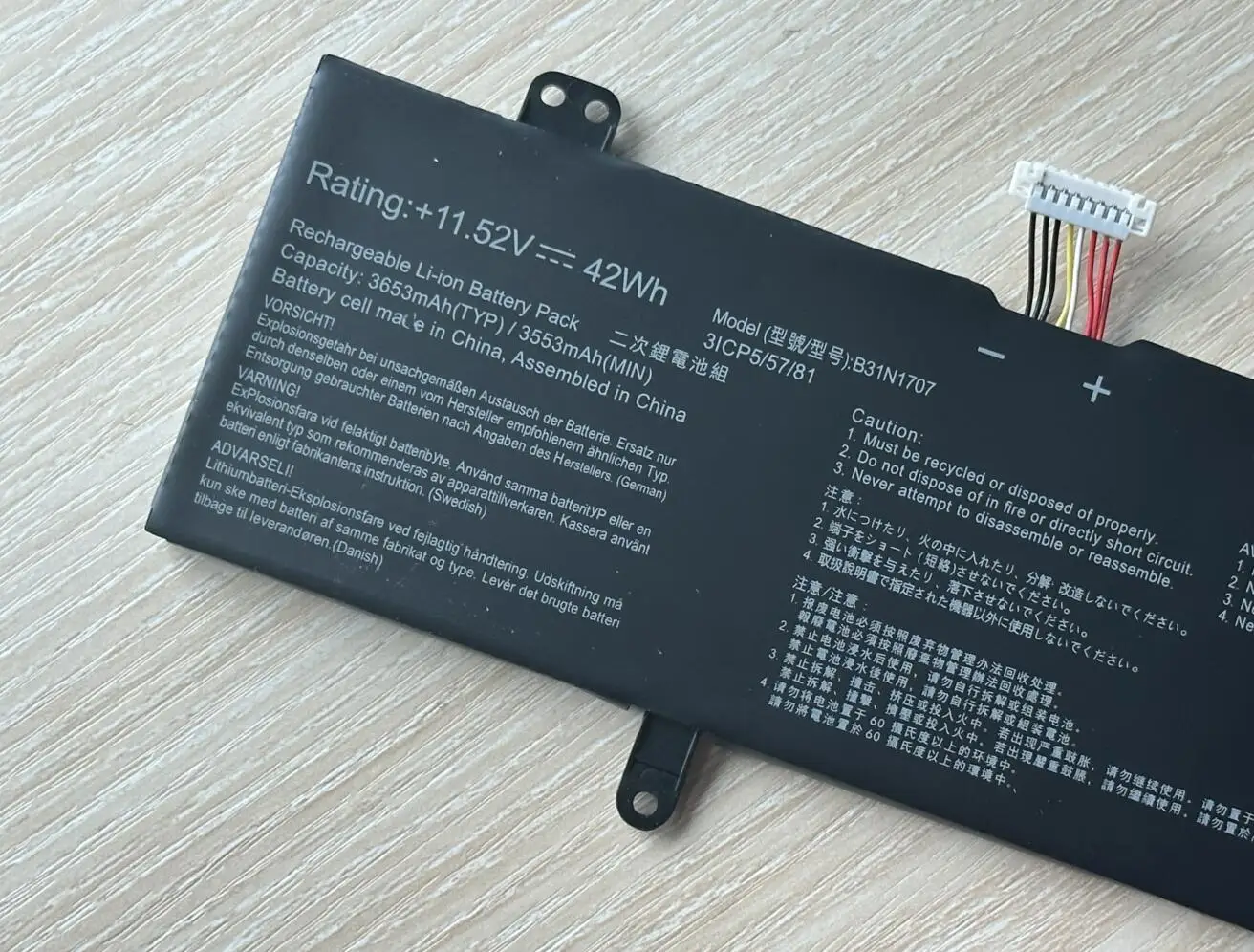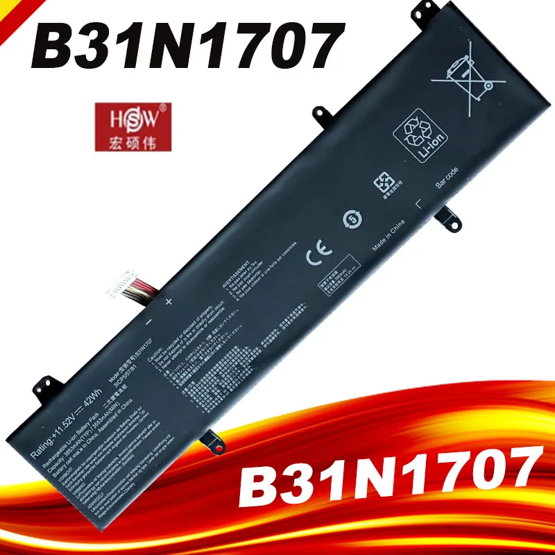 Voltaje: 11,4 VTipo de batería: polímero de litioCelda: Hecho en China, garantía de alta calidad.Color negroCondición: Batería de repuesto (100% nueva, ¡2 años de garantía!)Batería para portátil de 11.52V 42Wh B31N1707 para ASUS Vivobook X411UA X411UF X411UN X411UQ S14 S410UA S410UN