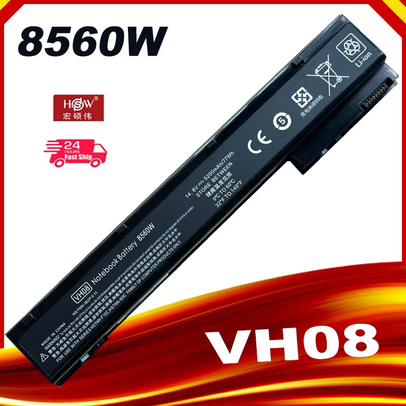 Batería para portátil de 14,8 V, 5200 mAh, 8 celdas, para HP EliteBook 8560w 8570w 8760w 8770w HSTNN-LB2P QK641AA VH08 VH08XL QK641AA