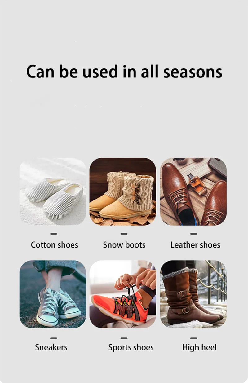 1. Se puede utilizar en todas las estaciones, no hay zapatos se dejan inactivos. Ya sea botas de nieve de invierno o calcetines finos de verano, se puede secar fácilmente.