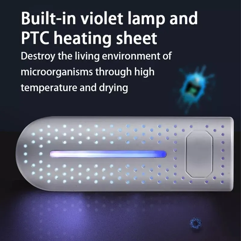 • Esterilización UV:El secador de zapatos utiliza la esterilización UV para matar las bacterias y los microorganismos que causan olores, manteniendo sus zapatos limpios y frescos.