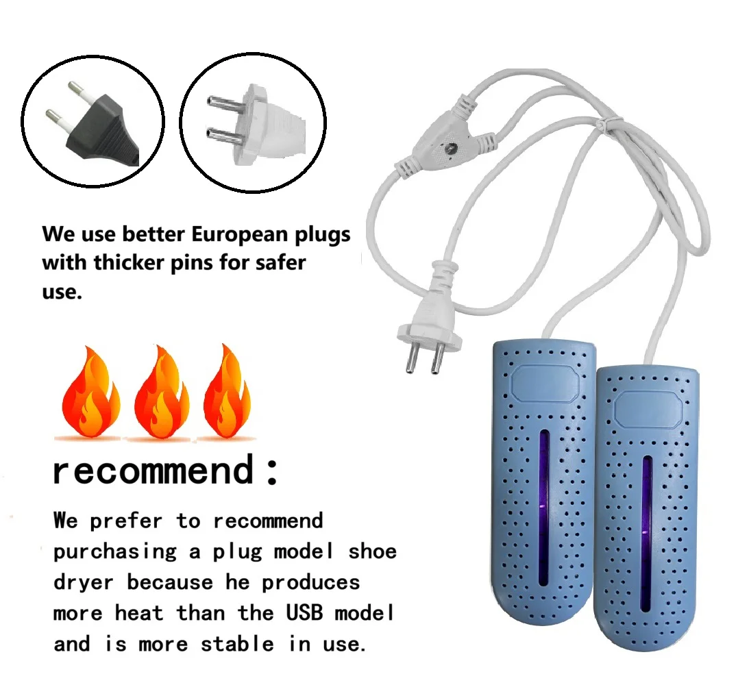 ¡* Esta versión USB secador de zapatos requiere un adaptador de al menos 5v2a para trabajar, y los adaptadores por debajo de 5v2a pueden no funcionar!