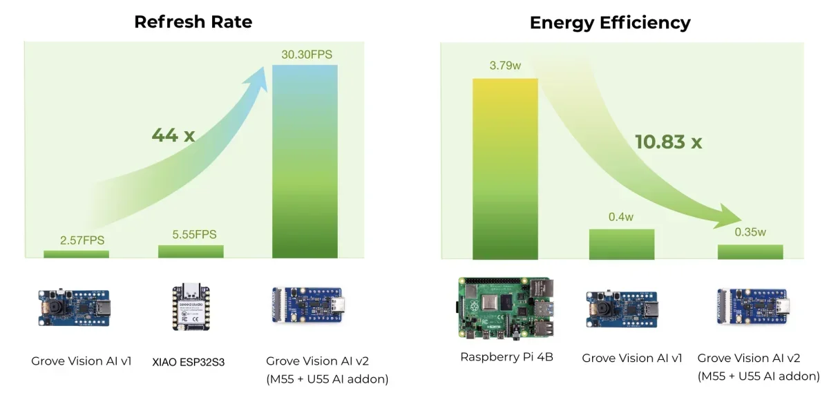 Basado en los resultados de la evaluación, Grove Vision AI V2 cuenta con un impresionante tiempo de inferencia de solo 33 milisegundos, una velocidad de fotogramas rápida de 30,30 FPS y un consumo de energía eficiente de solo 0,35 vatios.Estos resultados demuestran claramente que Grove Vision AI V2 es una opción premium para el procesamiento de visión de alto rendimiento.