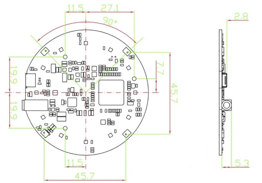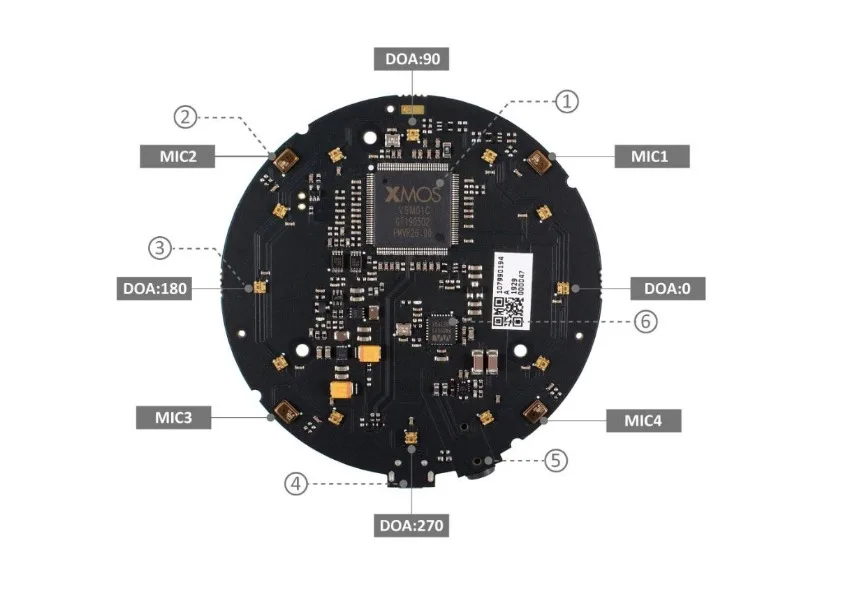 Un conjunto circular profesional de 4 micrófonos basado en XMOS XVF3800, que permite una captura clara de voz objetivo en entornos ruidosos.