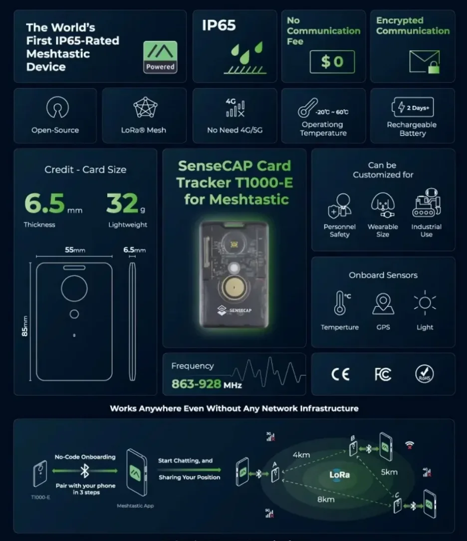 Seeed Studio Meshtastic SenseCAP Tracker T1000-E IP65 Posicionamiento interior y exterior, sensor de movimiento