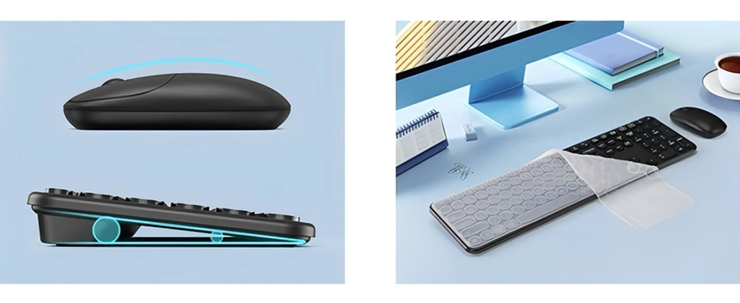 Este teclado y mouse inalámbricos están diseñados con una altura ergonómica, lo que ayuda a aliviar la tensión en las muñecas y los músculos del brazo.