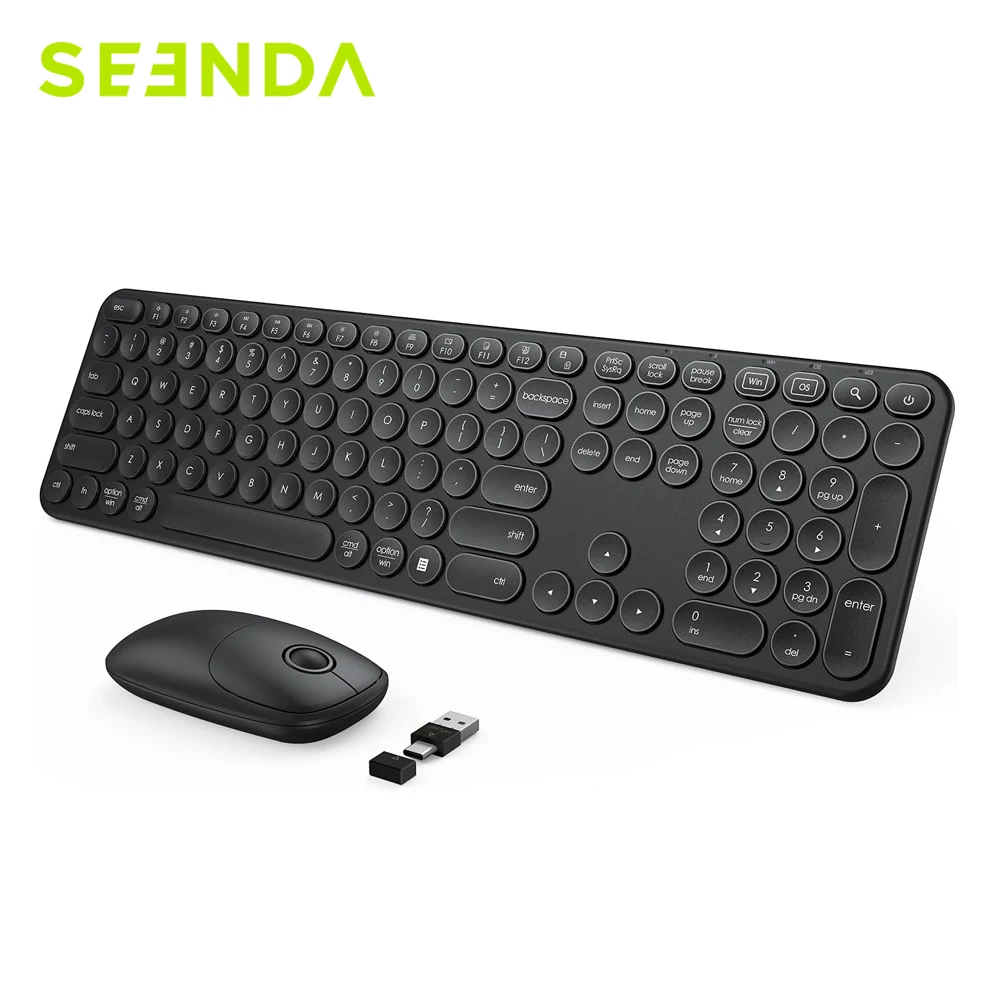 Comprar SEENDA-combinación de teclado y ratón inalámbricos USB y tipo C para Win 7/8/10 MacBook Pro Air, ordenador portátil, teclas redondas, teclados ergonómicos
