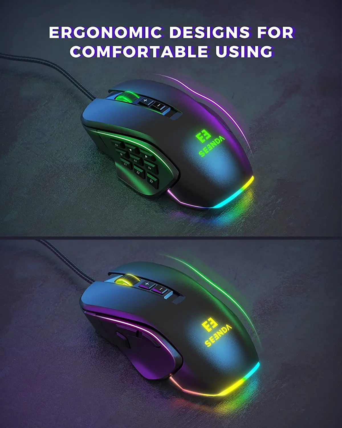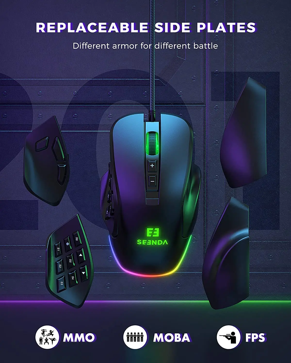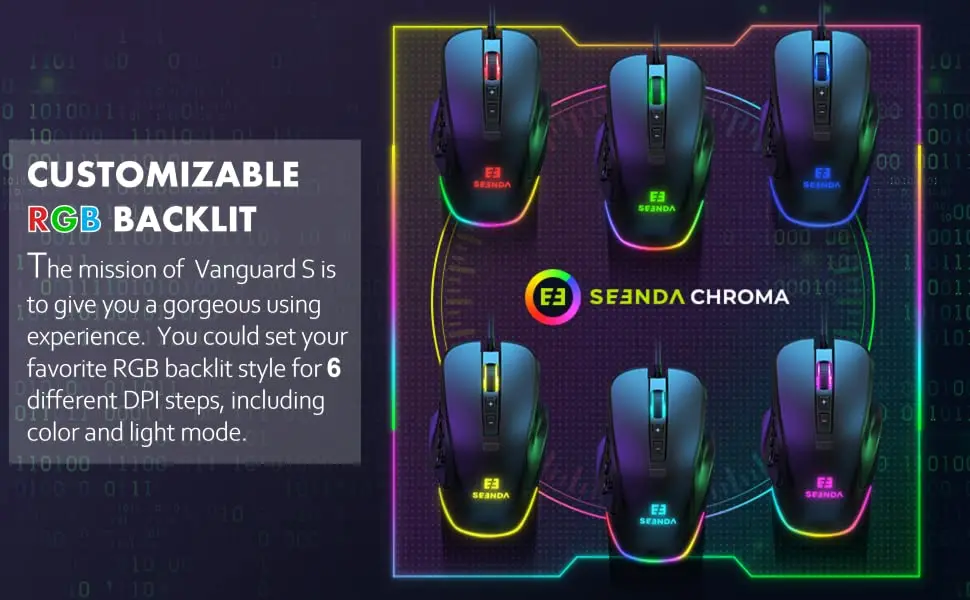 Comprar Seenda-ratón para juegos con cable RGB Vanguard S, con placa lateral intercambiable, 10000 DPI, Macros programables personalizables para jugadores
