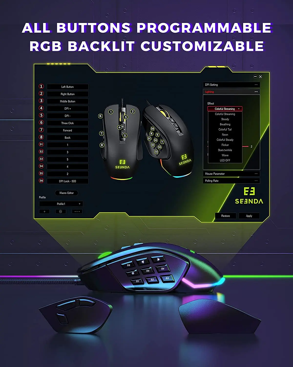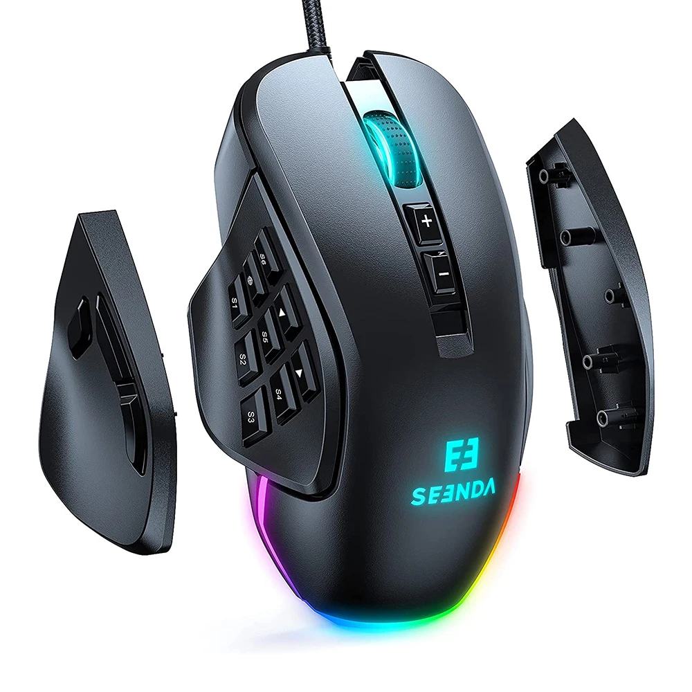 Comprar Seenda-ratón para juegos con cable RGB Vanguard S, con placa lateral intercambiable, 10000 DPI, Macros programables personalizables para jugadores