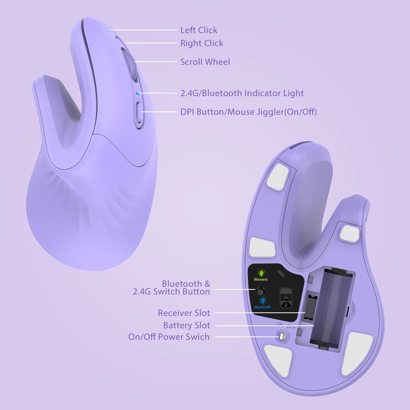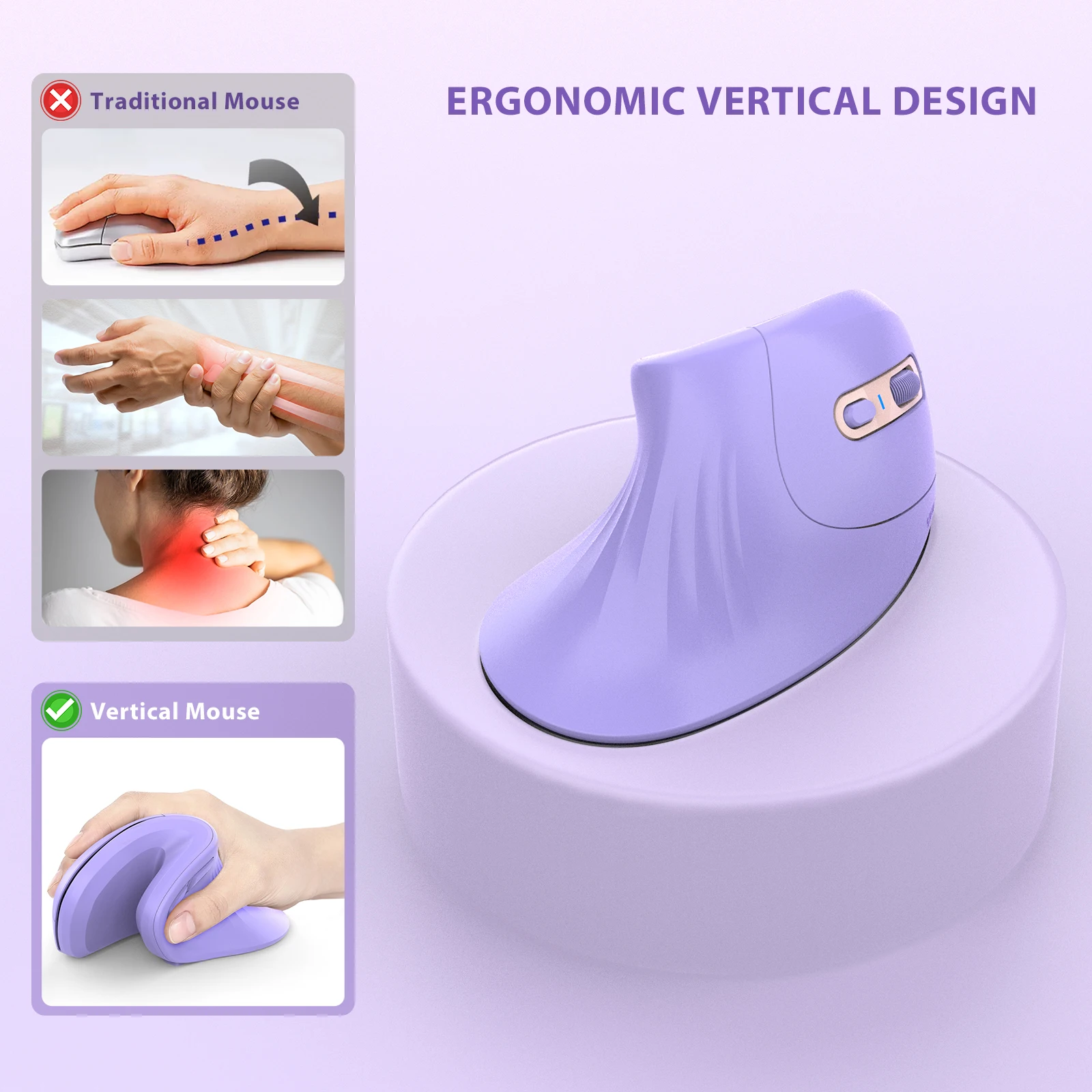 Comprar Seenda-ratón Vertical ergonómico para ordenador, periférico inalámbrico con Bluetooth 2,4g, color morado, para Notebook y PC