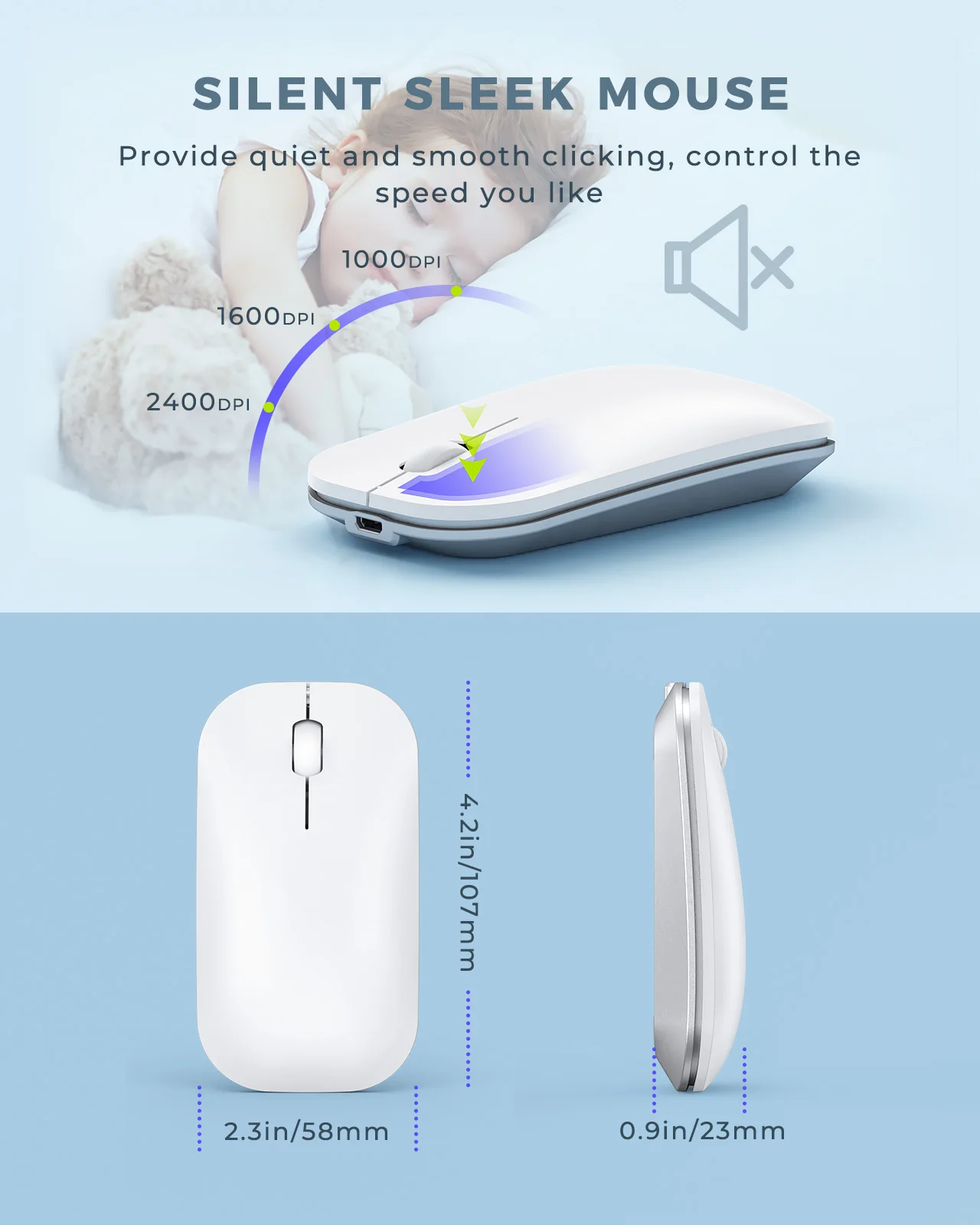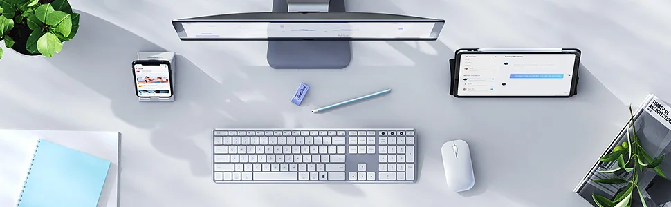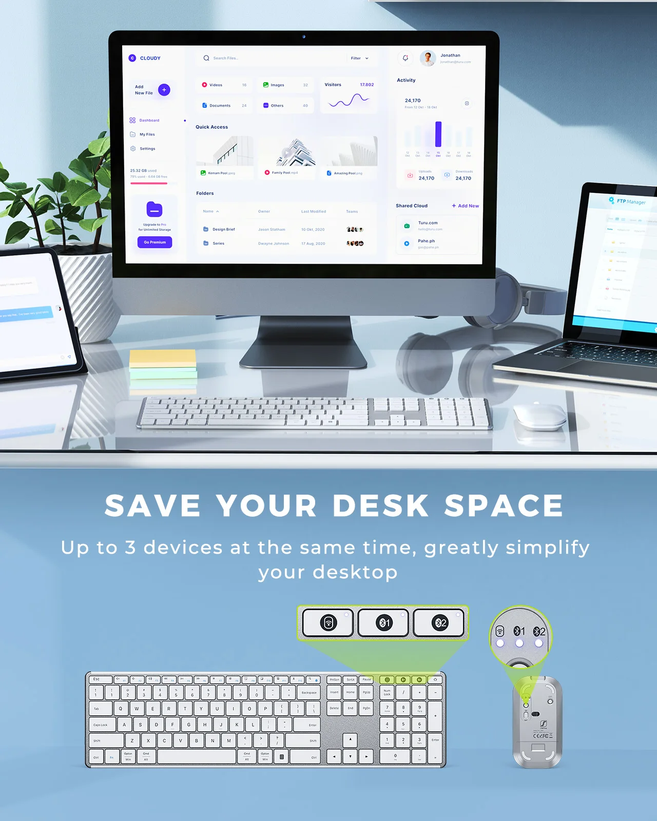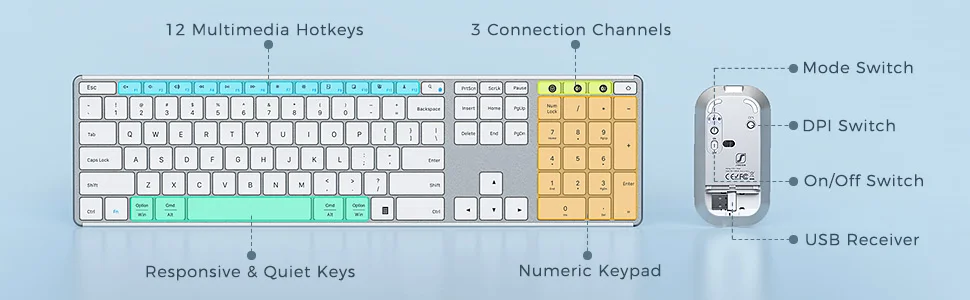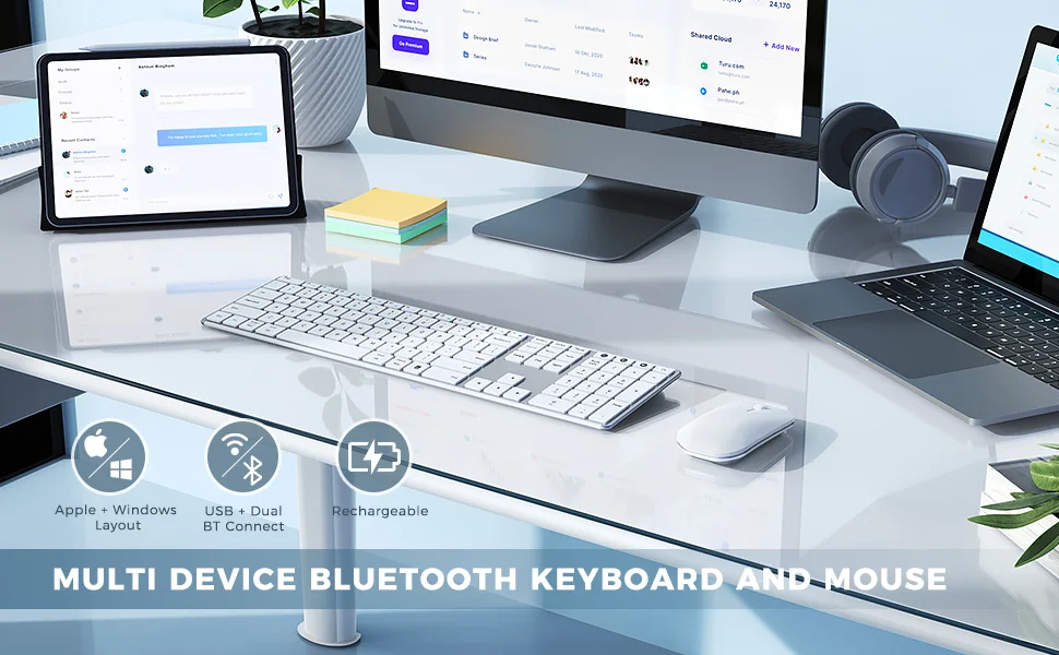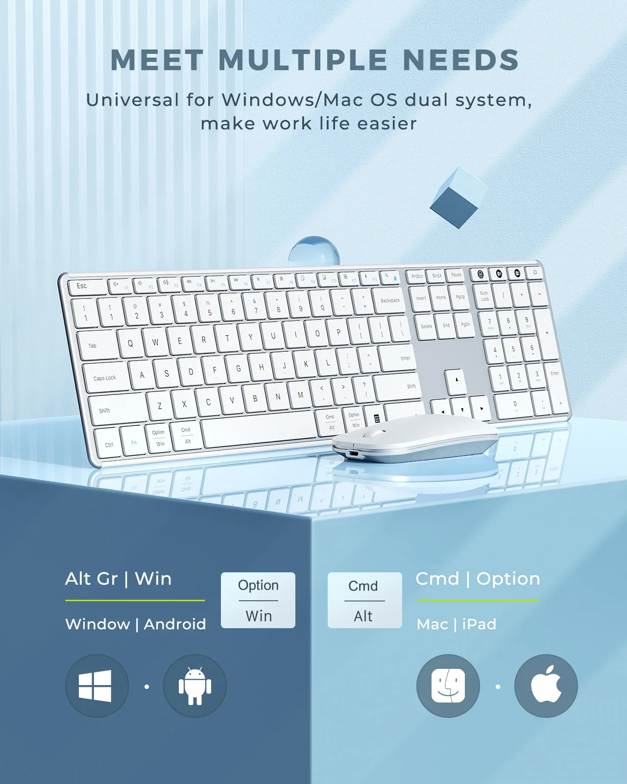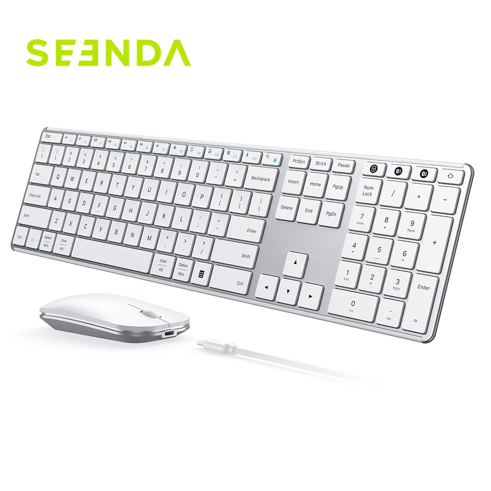 Comprar Seenda-teclado y ratón inalámbricos con Bluetooth, Combo para Mac, iPad, iOS, Windows, recargable, multidispositivo con teclado numérico