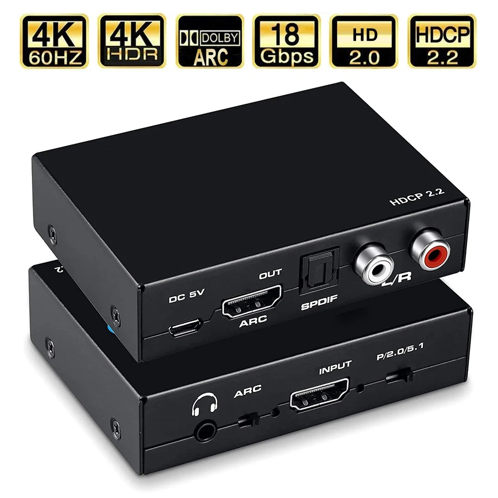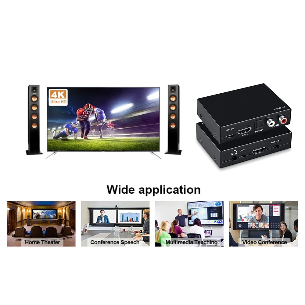 1. HDMI-Compatible 2.0b audio and ARC extractor converter supports 4K/ 2k@60hz Dolby Atmos HDR10 Dolby Vision, Blu ray/DVD/HD player/cable TV/TV/for PS3/4/X PC/laptop, high-definition camera, etc. suitable for televisions.