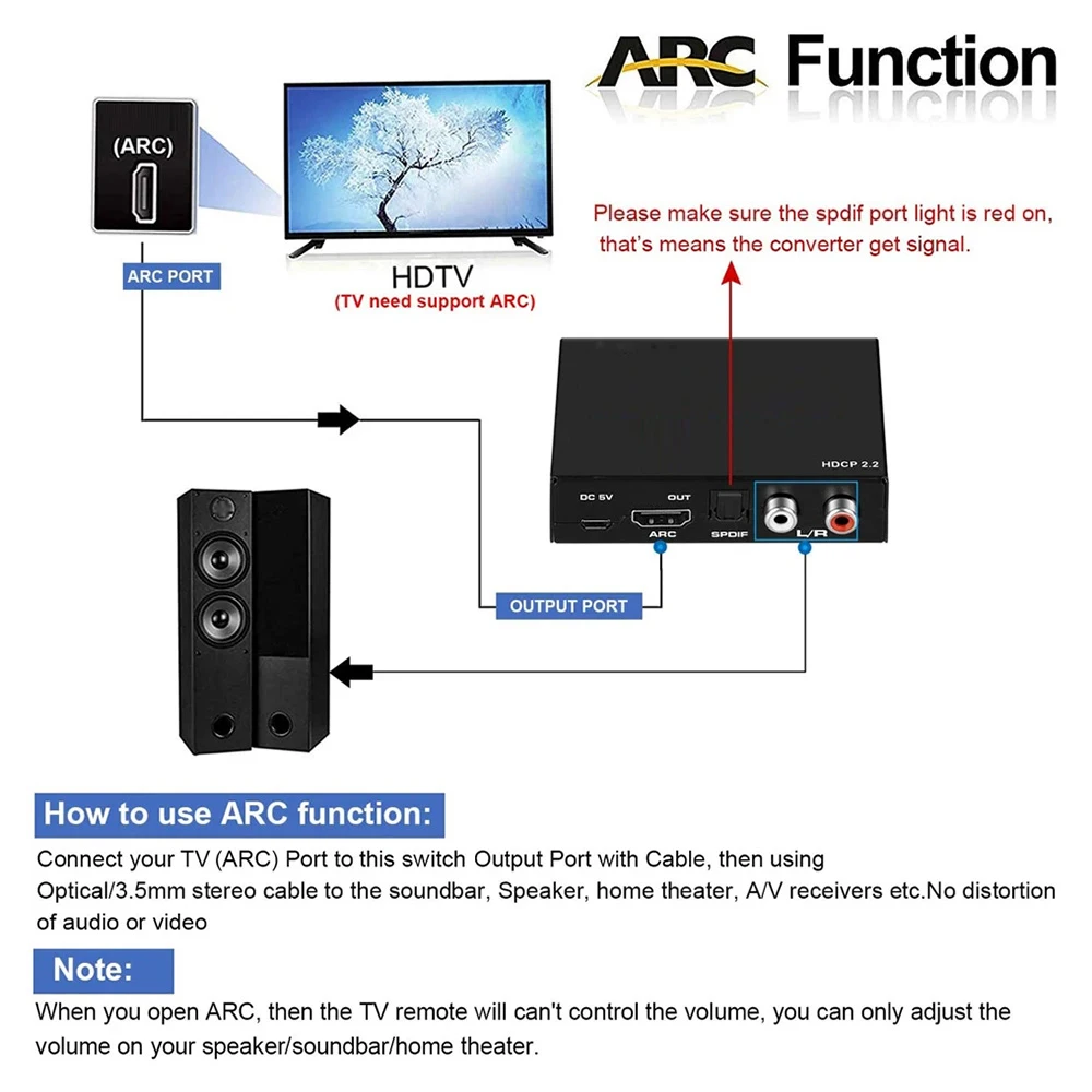 *Convert an HDMI-Compatible input to an HDMI-Compatible (ARC)+audio (SPDIF+R/L+3.5 jack) output