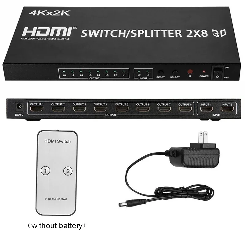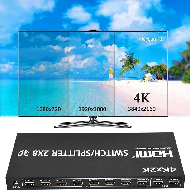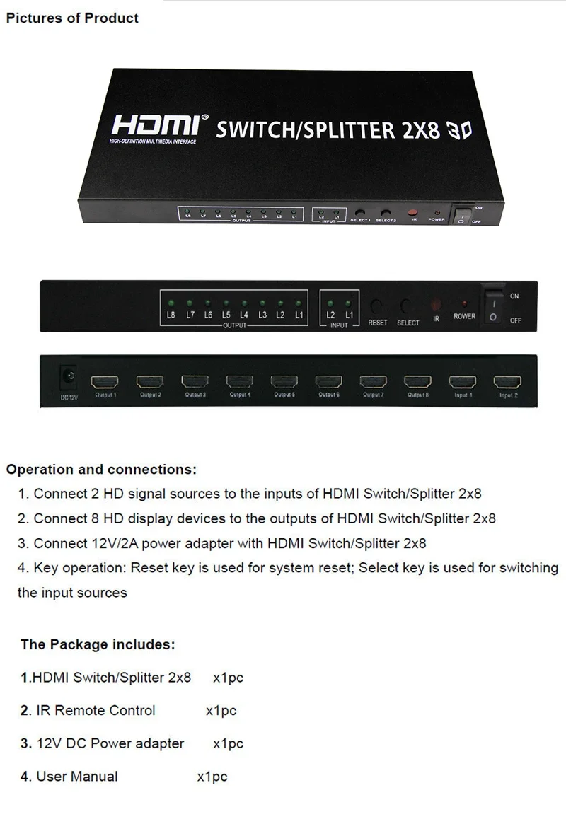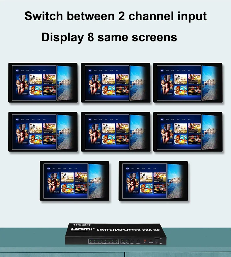 Comprar Selector de caja de interruptor HDMI 4K 3D 2x8 2 en 8 Out HDMI Splitter 1 a 8 Pantalla de Monitor para PS3 PS4 PS5 Xbox DVD PC a TV proyector