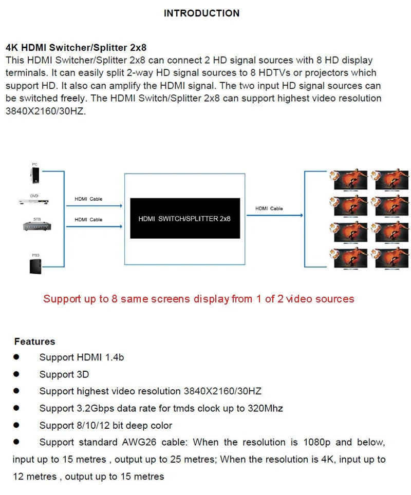 Puntas cálidas:1. SIN paquete al por menor, SIN batería 2. La entrada HDMI A y B no se pueden mostrar al mismo tiempo,Solo puedes cambiar entre ellos De entrada A a 8 monitores, de entrada B a 8 monitores