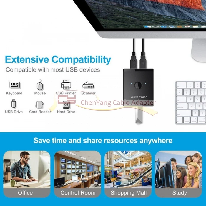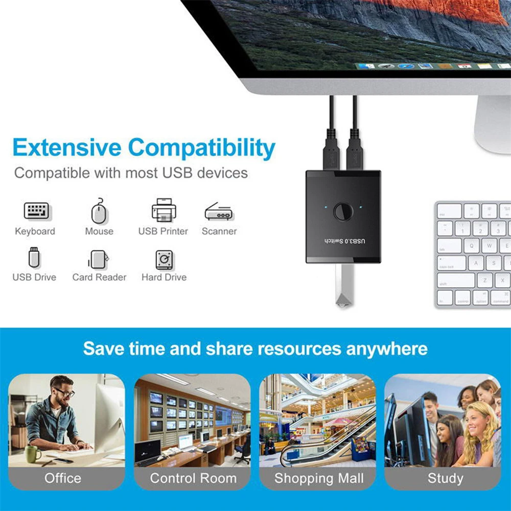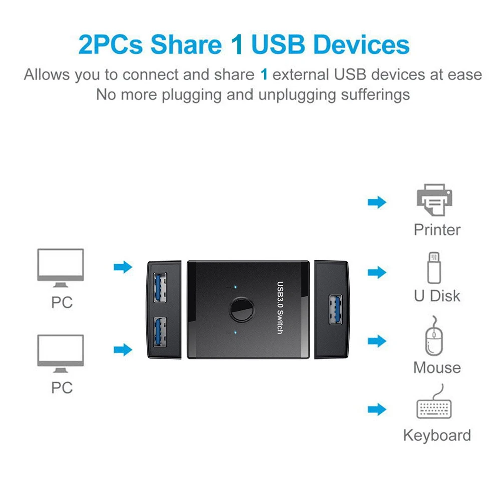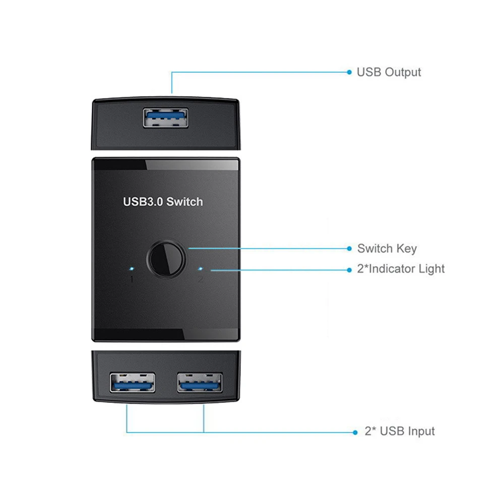 Comprar Selector de interruptor bidireccional KVM USB 3,0, 2 a 1, compartir piezas o 1 a 2 Hub para teclado, ratón, escáner, impresora