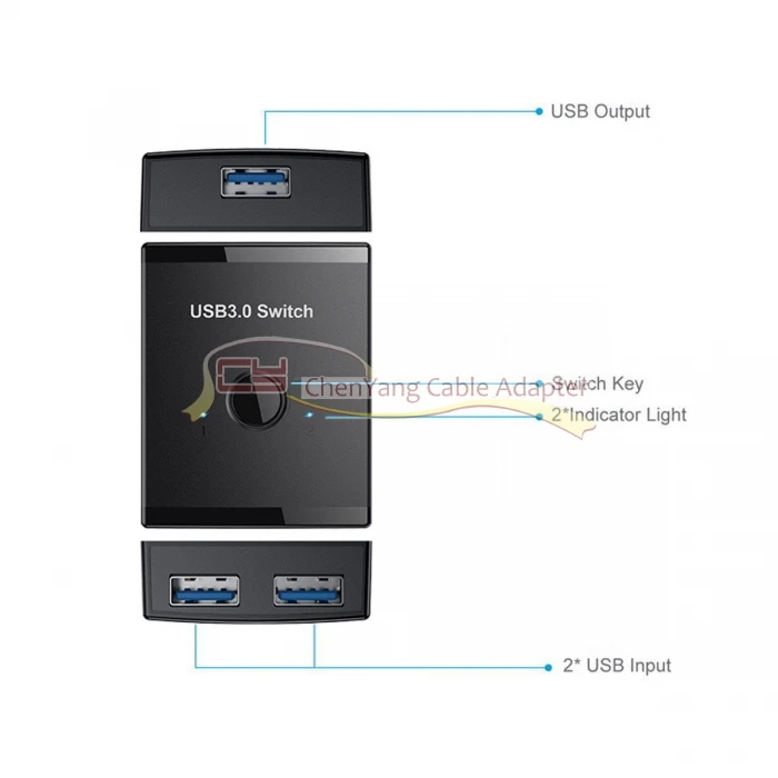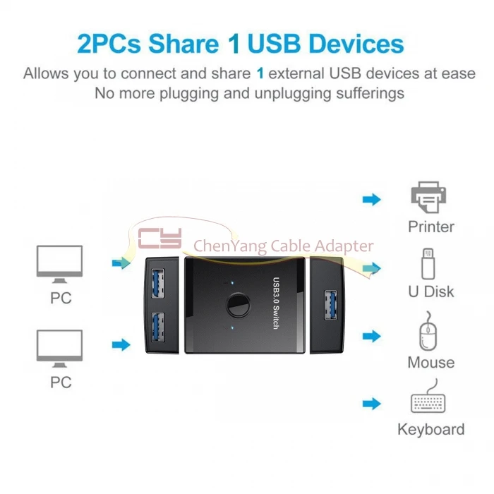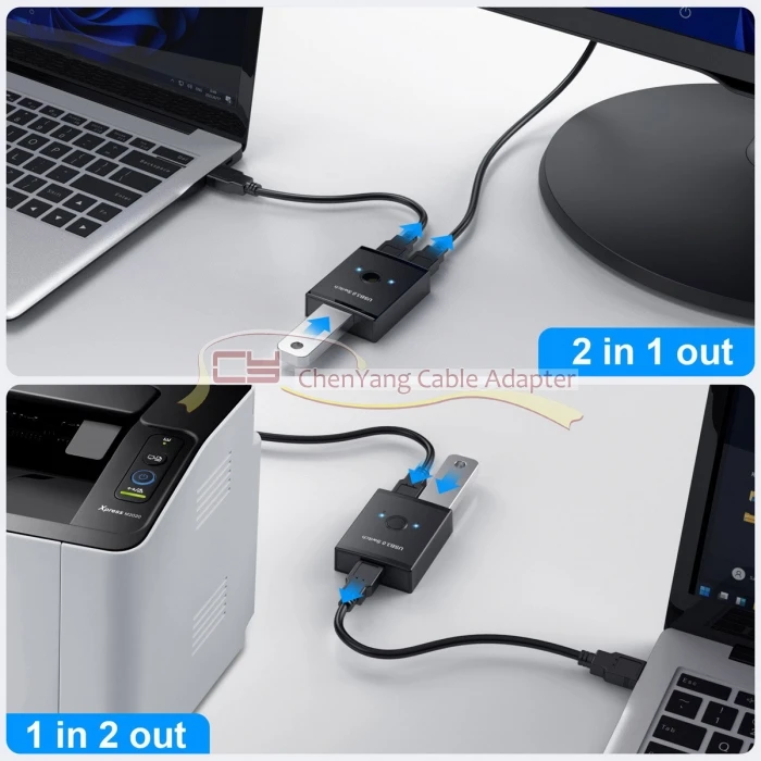 Selector de interruptor bidireccional KVM USB 3,0, 2 a 1, uso compartido de la piezas o 1 a 2 concentradores para impresora de escáner de teclado y ratón