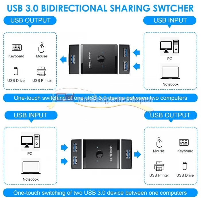 Cambio de un toque de dos dispositivos USB3.0 entre un ordenador.