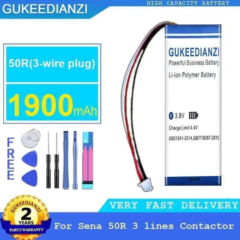 Batería de componentes de dispositivos de comunicación de alta capacidad y eficiencia 1900mAh para contactor Sena 50R de 3 líneas 50R (enchufe de 3 cables)
