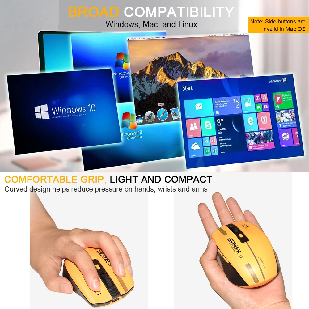 Comprar SENLIFANG-ratón inalámbrico con 6 botones tipo C, dispositivo DPI, silencioso, 2,4G, RGB, óptico, con receptor USB, para escritorio, PC, ordenador portátil