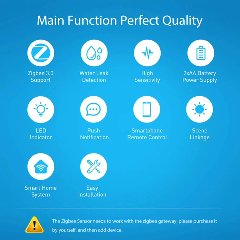 Comprar Sensor de alarma de fugas de agua Tuya ZigBee, Detector inteligente de nivel de agua para el hogar, alerta de inundación, desbordamiento, seguridad, protección contra fugas de agua