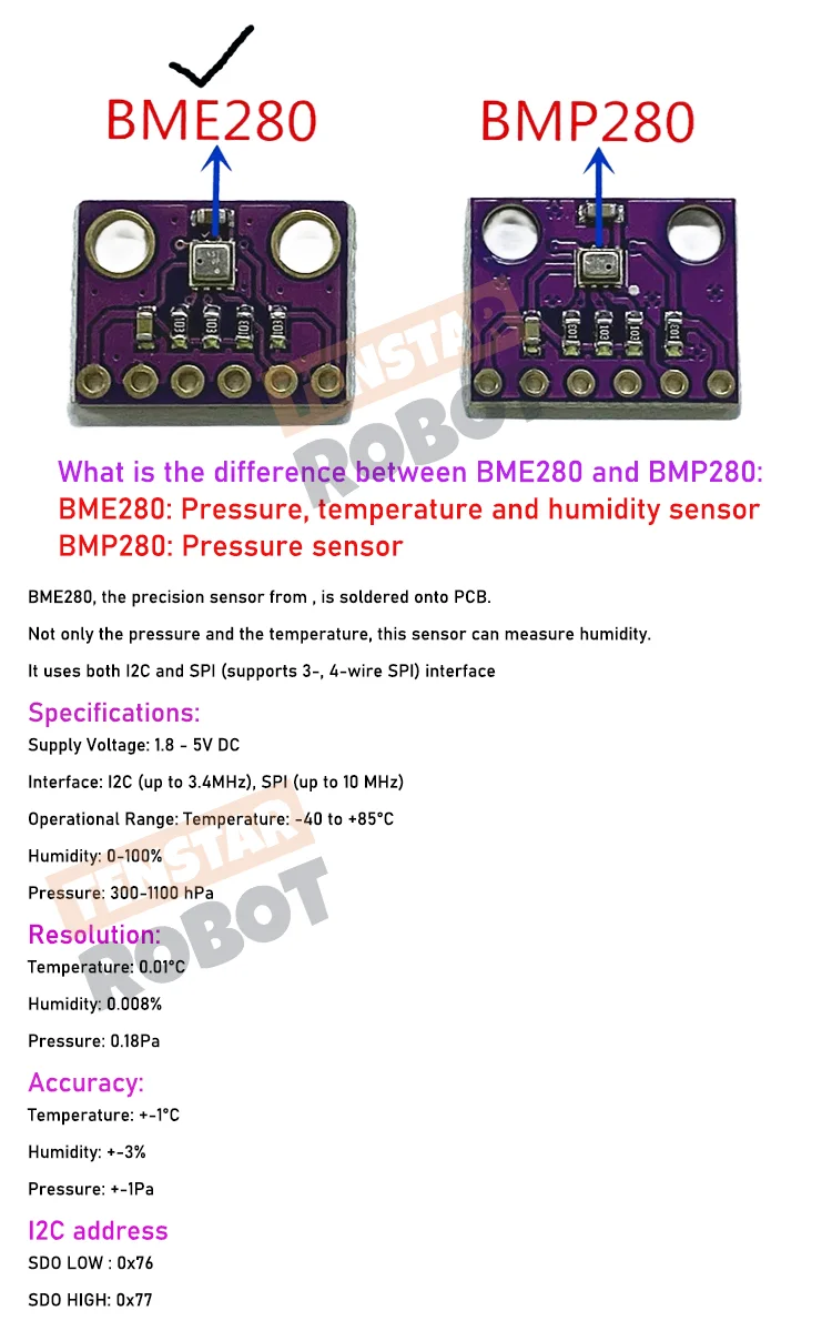 Comprar Sensor de altitud de presión barométrica Digital 3 en 1 BME280 3,3 V 5V I2C/SPI módulo de temperatura de humedad y alta precisión