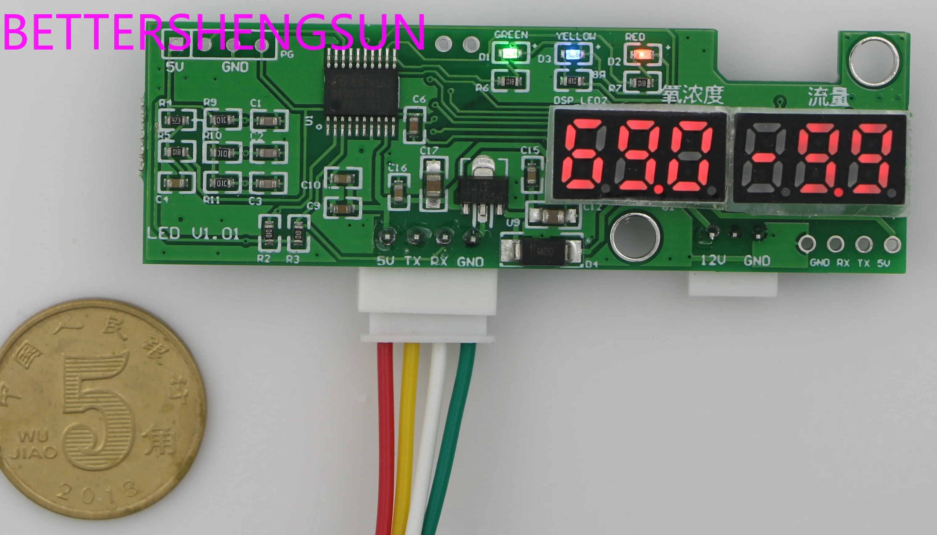 5. Compatible con pantalla LED. Puede mostrar la concentración de oxígeno O2 y el flujo de oxígeno al mismo tiempo. 20.5% - 95%. 0,0-5,0 L/M.