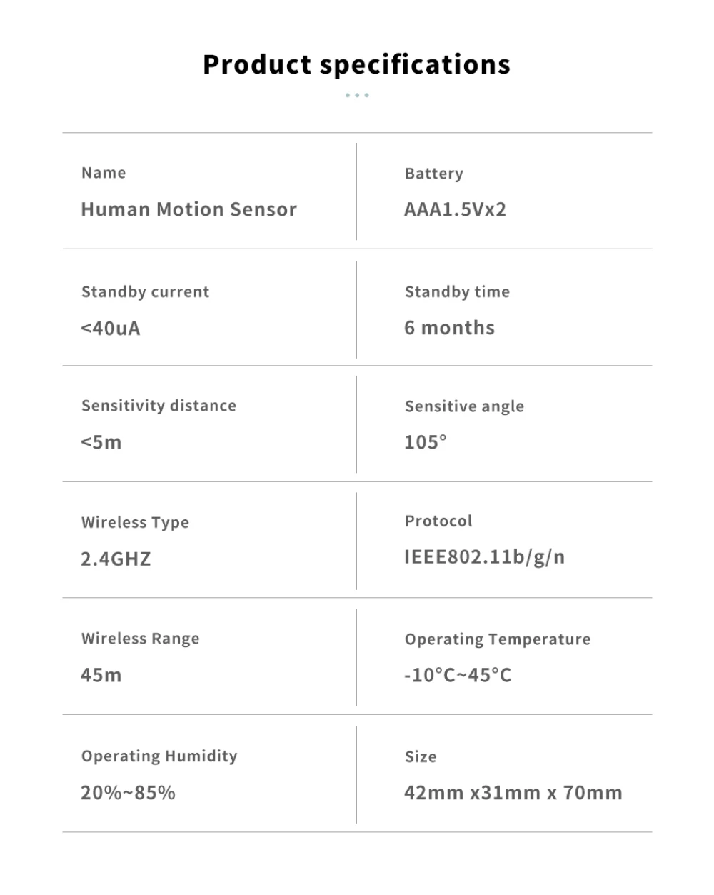 1 * sensor de movimiento corporal, 1 * manual, 1 * soporte