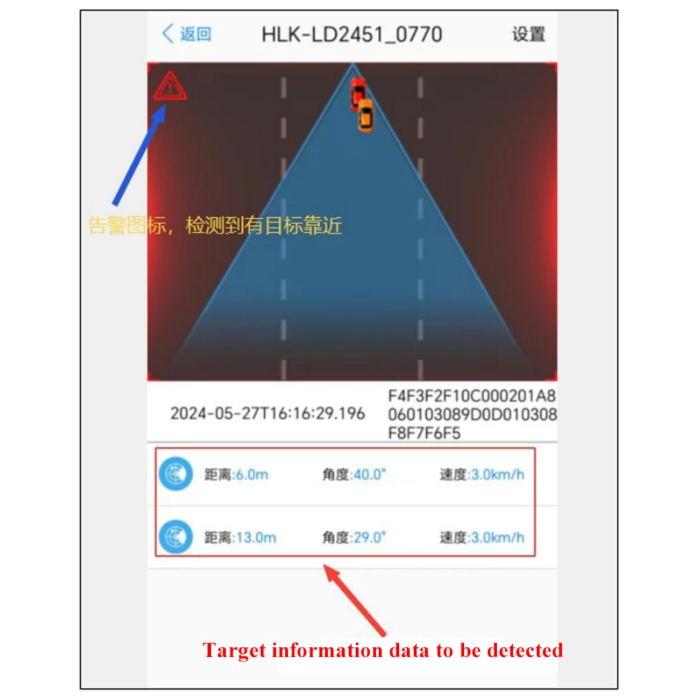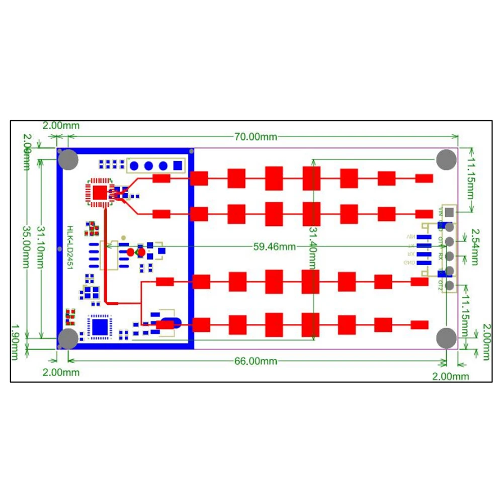 Sensor de distancia LD2451 Radar de 24GHz, velocidad de distancia, módulo de detección de azimut, fuente de alimentación de 5V para conducción inteligente de vehículos