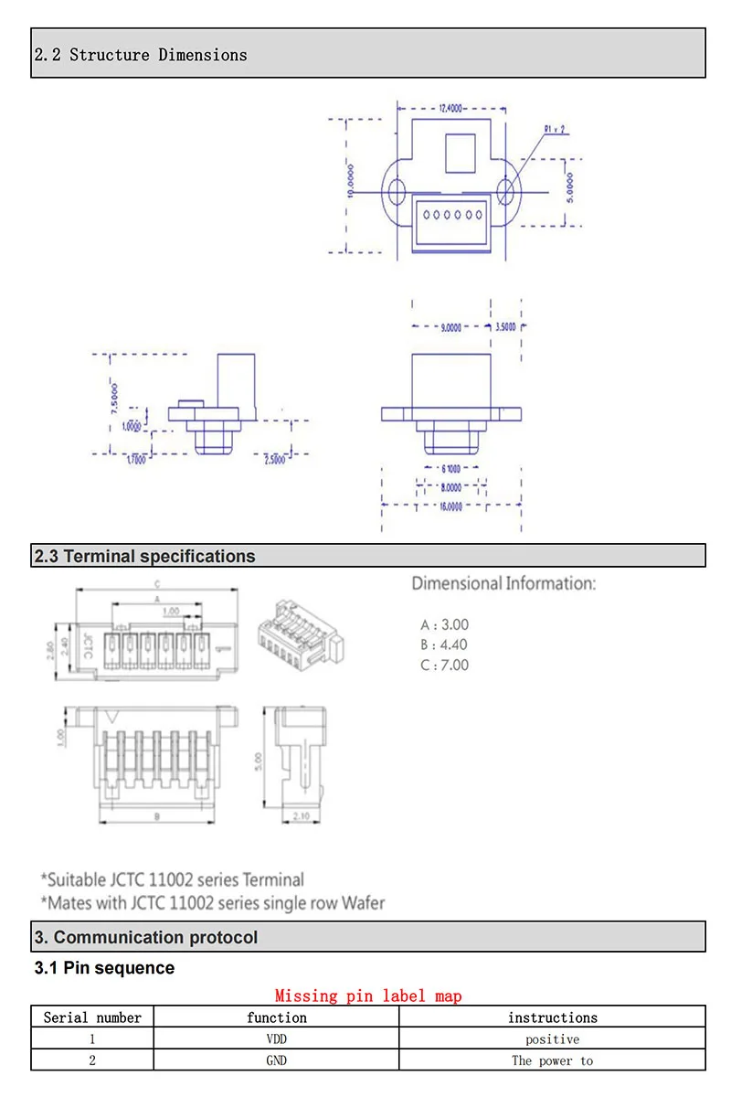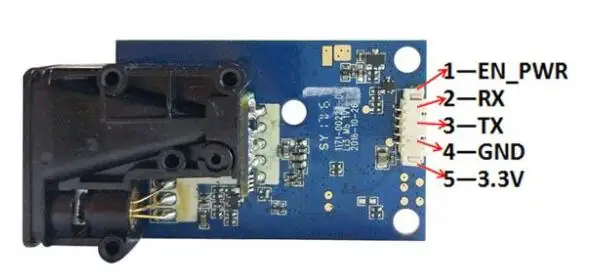 Connection diagram:Description: 1-EN_PWR // *** High level (3.3V ~ 5V) enable terminal, set high level for normal operation, set low levelWhen the machine is in a low power state *** //2-RX // *** communication receiving end *** //3-TX // *** communication sender *** //4-GND // *** signal ground, and negative power supply port *** //5-3.3V // *** Power supply “positive” port *** //