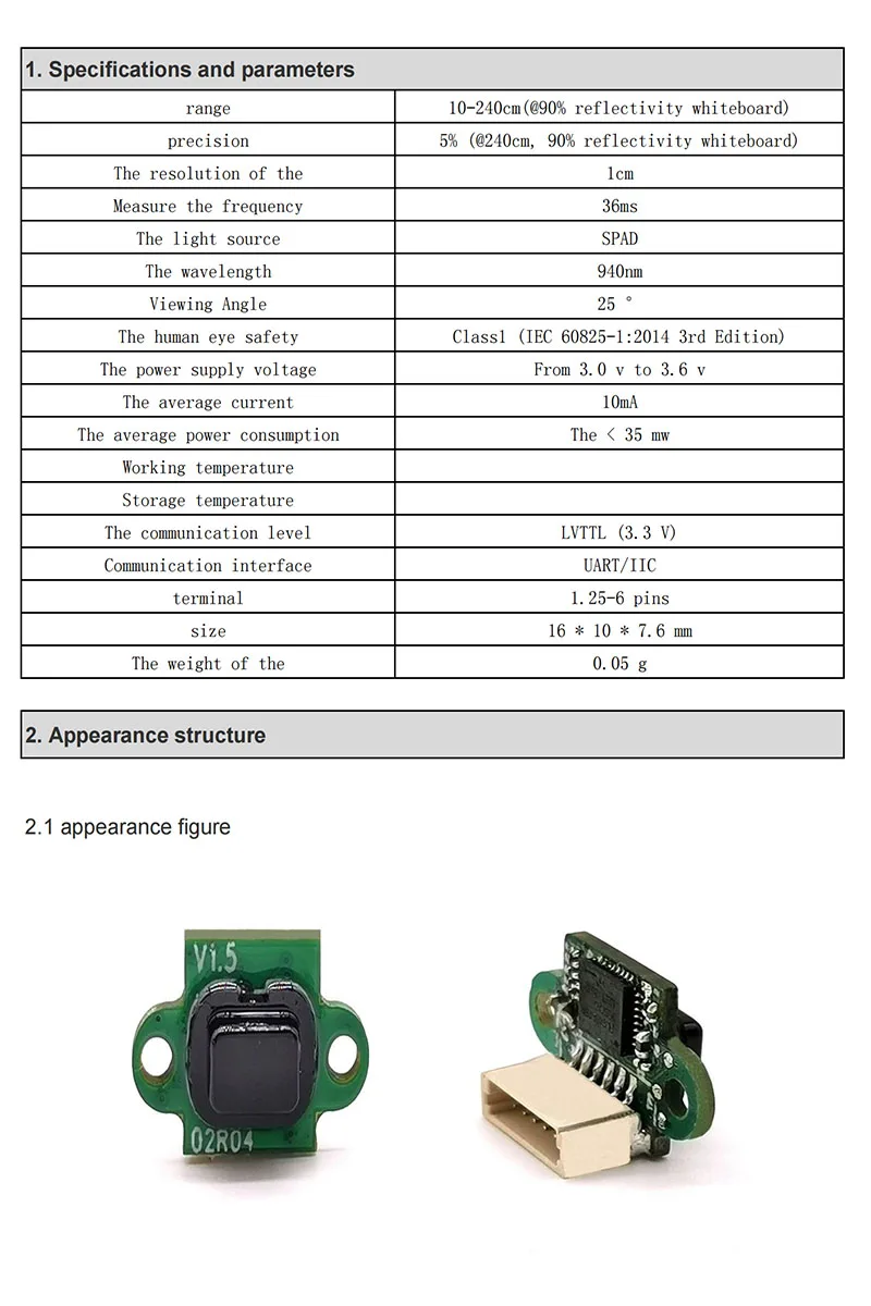Comprar Sensor de distancia de medición láser TW10S-UART de alta precisión para módulo de telémetro infrarrojo Arduino TWTOF240UI I2C IIC