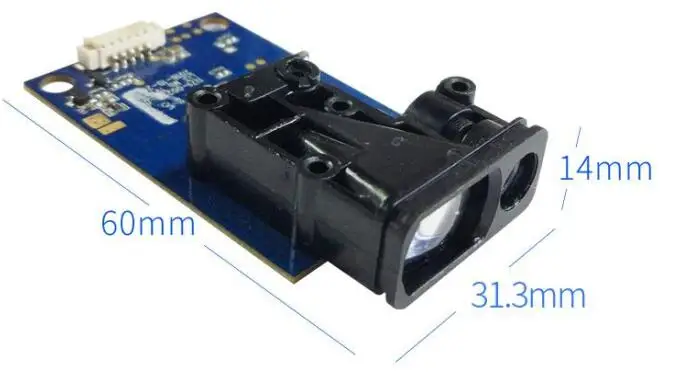 Installation Notes:1. Please do not loosen the 4 screws of the PCB circuit board, that is, loosening and stress after precision focus adjustment may cause irreparable defocus problems!2. For fixing, you can use the three round holes left on the module for fixing. Please do not apply obvious external force to the circuit board or squeeze or distort the optical structure.3. The module should not be used for a long time under strong vibration environment. If installed in a use environment with obvious vibration, the front end should have a certain soft fixation.4. Care should be taken to keep the entire optical path of the module clean. Laser tube windows, small transmitting lenses, large receiving lenses, housing windows, and other optical lenses should be kept clean. Do not expose the module to dusty environments, and do not touch the transmitting and receiving lenses with your fingers. Especially when measuring long distance or weak reflection targets, the lens contamination will obviously or seriously affect the measurement! Contaminated lenses can be blown off with a strong skin to remove surface particles and floating dust, and then wipe it with a soft paper with a small amount of dust. Do not wipe it back and forth, and do not touch it with the paper or the place where it has been rubbed. Wipe the lenses! Do not wipe the transmitting and receiving lenses with liquids that are not suitable for PMMA resin lenses!Outdoor use instructions:1. The ability of the module to measure outdoors during the day is significantly reduced, especially in the sun. Therefore, it should cooperate with a special reflective plate or reflective film. However, the reflection film may cause excessive signal when measuring within 10 meters.2. Direct sunlight on the lens of the module, or direct reflection surface with an angle of less than 45 degrees from the laser beam exit direction, may make it impossible to measure. Rain and snow can also make it impossible to measure.3, whether indoor or outdoor, avoid reflecting surface is mirror or transparent and translucent unless special use.V. Instructions for use of the upper computerIf necessary, you can ask the customer service for an upper computer software package after placing the order. You can also use the serial debugging tool, which can be selected according to your own needs. You can also ask our customer service for the installation package of the serial debugging tool. Of course, you can also download it online.PC software interface