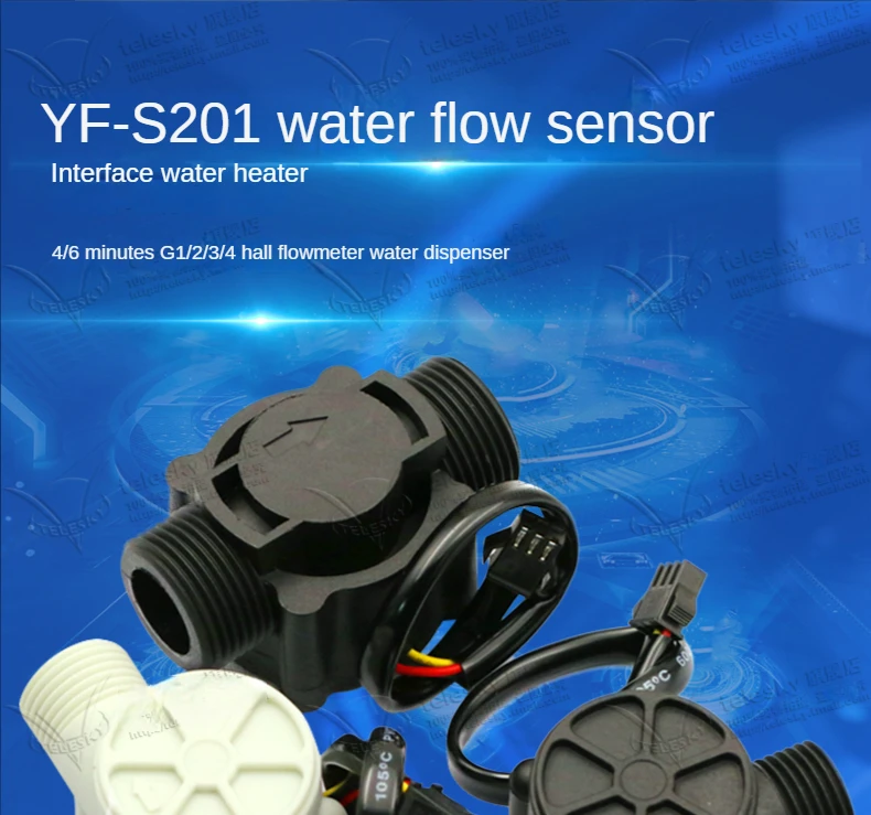 Sensor de flujo de agua YF-S201, interfaz G1/2/3/4, medidor de flujo Hall, dispensador de agua, 4/6 puntos