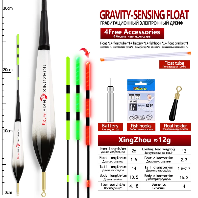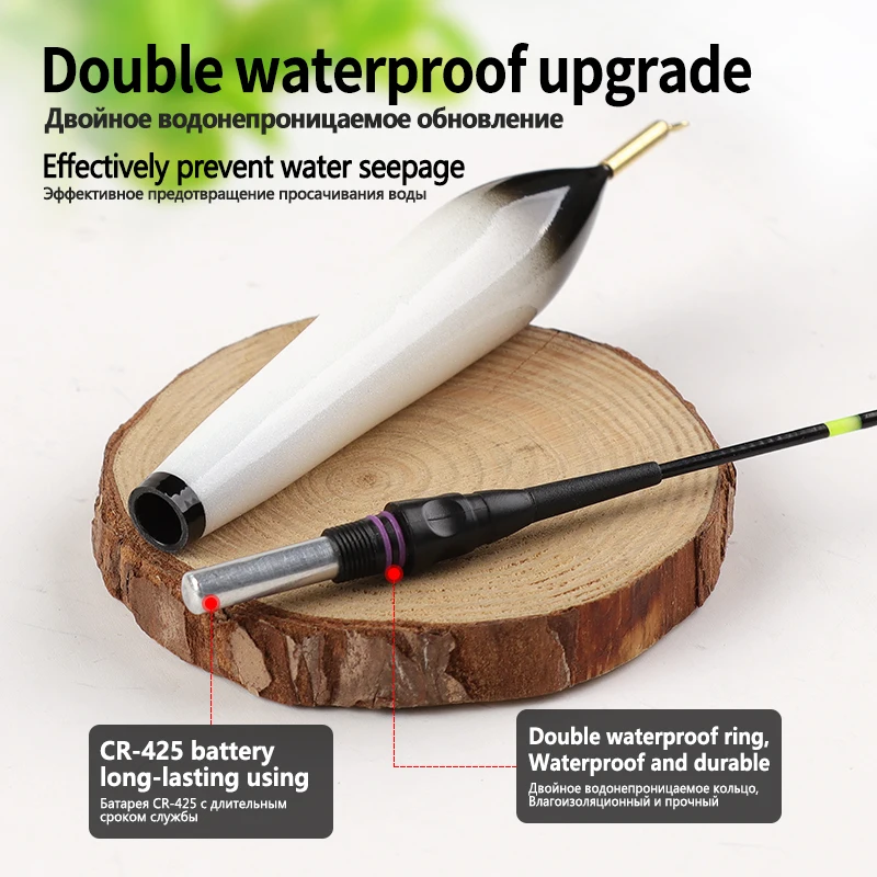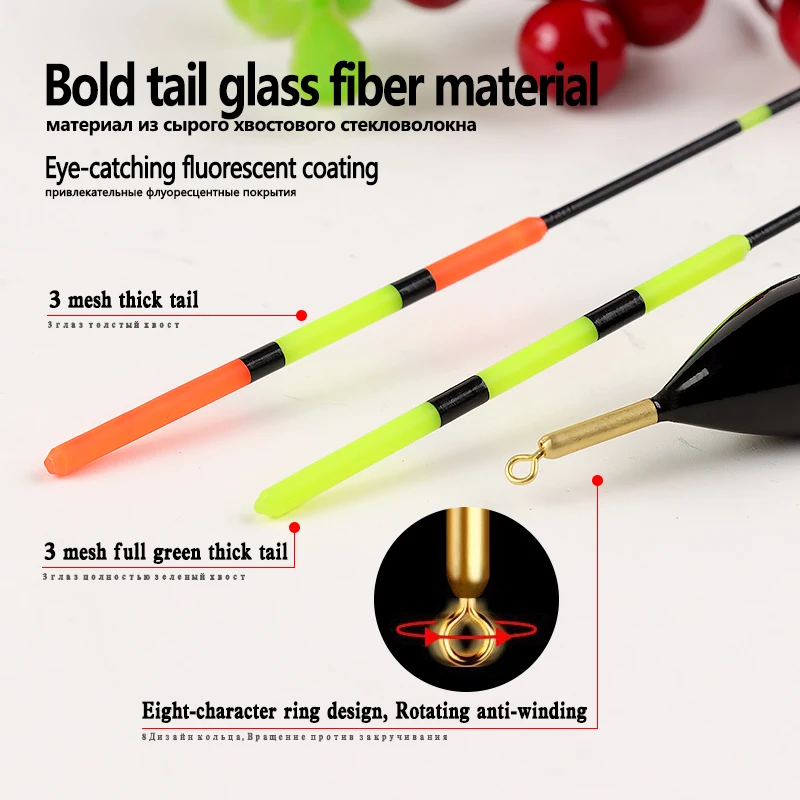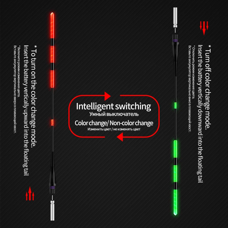 Características:1. La cola flotante es un sensor de gravedad, que puede cambiar de color cuando los peces muerden los anzuelos de pesca.2. El flotador está hecho de nanomaterial de alta calidad, que hace que los flotadores sean duraderos.