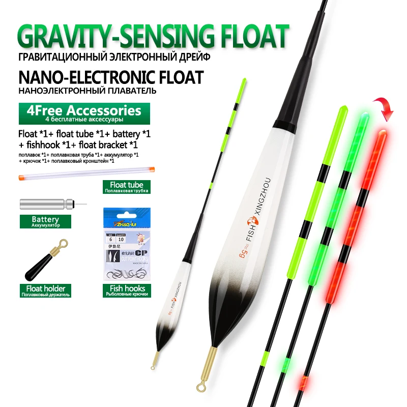 Comprar Sensor de gravedad luminoso, flotador que cambia de Color, 1 CR425, 1 tubo flotador, 1 bolsa de ganchos, 1 reposacabezas, herramientas de boya eléctricas Nano