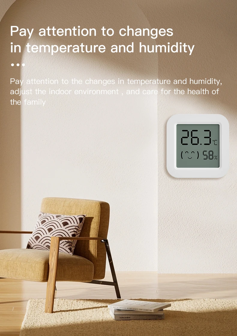 -Monitoreo en tiempo real de los cambios de temperatura y humedad en el hogar, la pantalla LCD muestra claramente el valor.