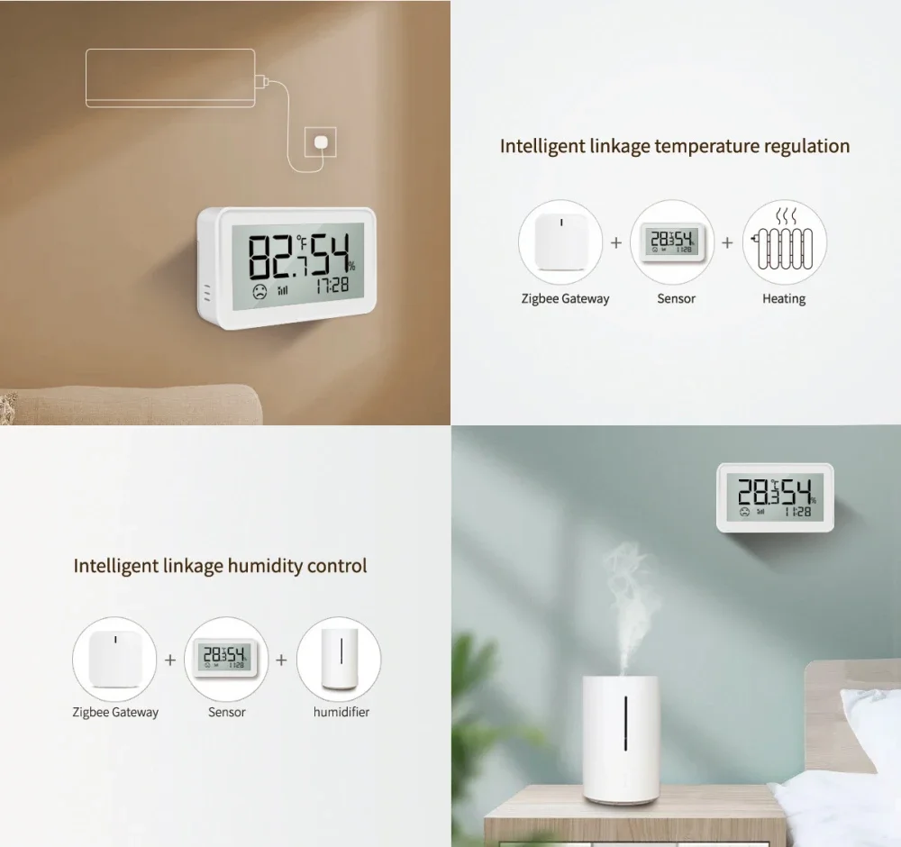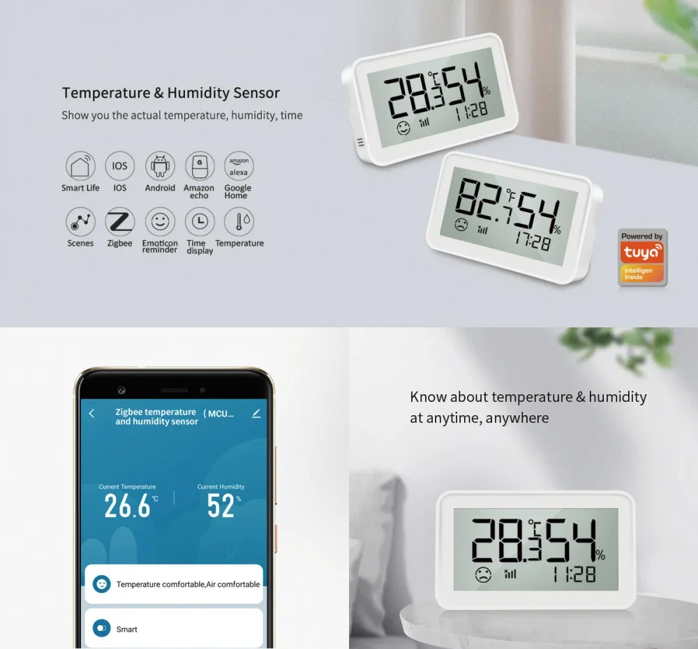Sensor inteligente de temperatura y humedad de escritorio Tuya con pantalla LCD, aplicación remota de monitoreo Integra para hogar inteligente, funciona con Alexa/Google