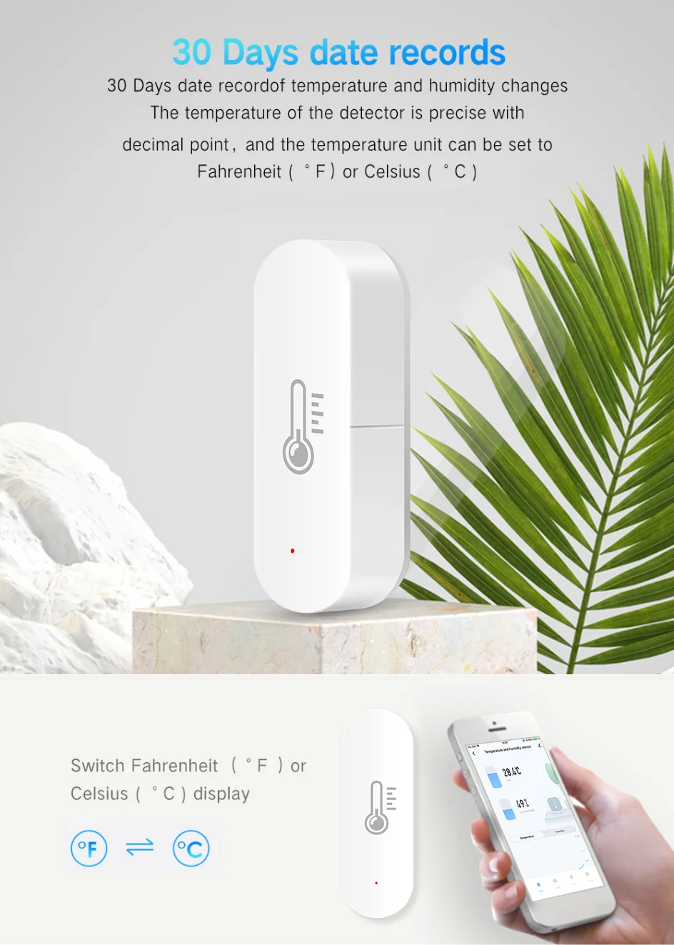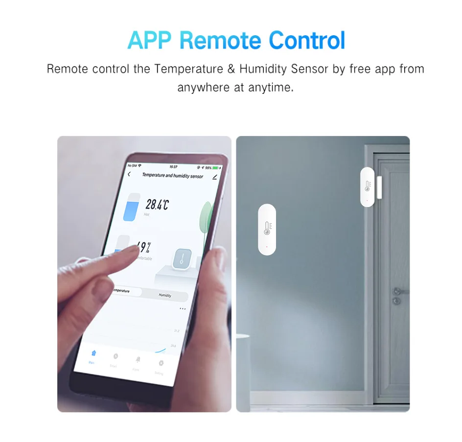• Compatibilidad de control de voz :Este sensor de temperatura y humedad es compatible con Alexa y Google Assistant, lo que le permite controlarlo con su voz sin la necesidad de ningún dispositivo adicional.