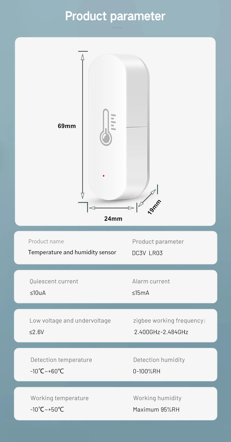 • RoHS certificado :Este sensor de temperatura y humedad está certificado por RoHS, lo que garantiza que cumple con los más altos estándares de seguridad y protección ambiental.