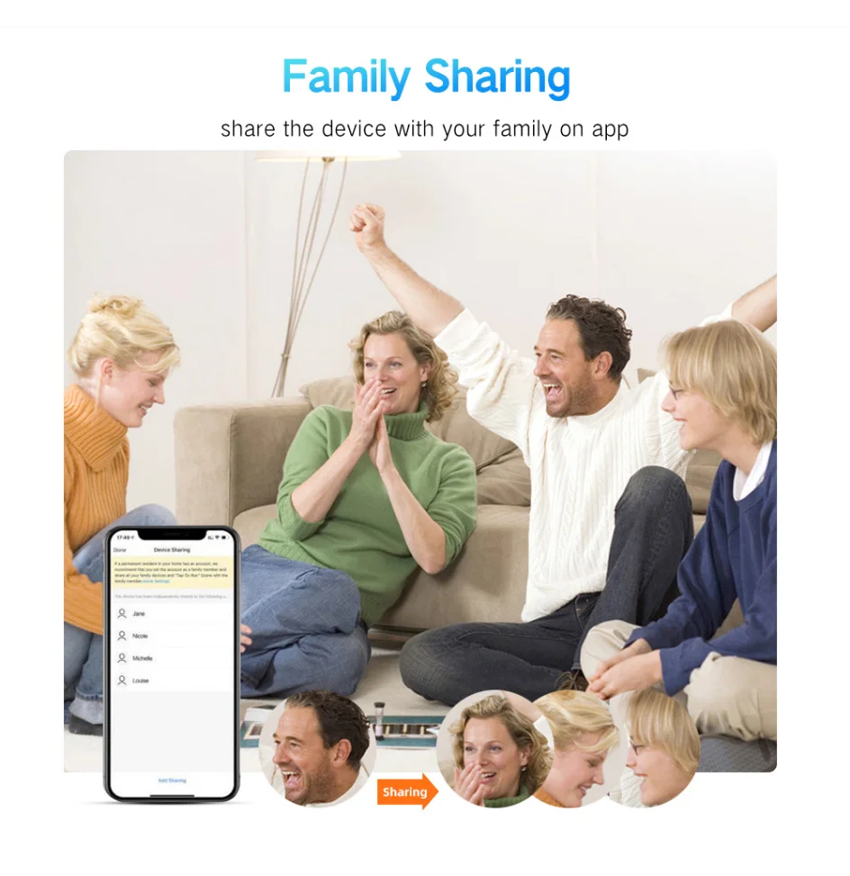 【Compartir dispositivosPuede compartir sus dispositivos adicionales con los miembros de su familia, para que también puedan monitorear el entorno ambiental.