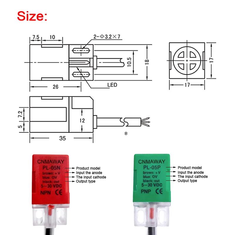 Comprar Sensor de interruptor de proximidad inductivo, PL-05P, PL-05N, PS-05P, PNP, NPN, NO 5-30VDC, PS-05N