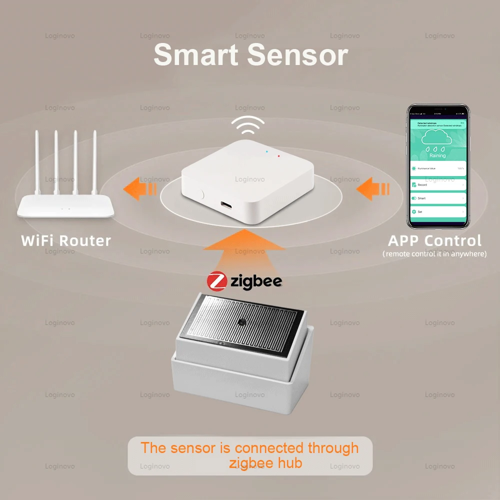 Se requiere una puerta de enlace ZigBee para que este sensor de lluvia ZigBee funcione como puente central para todos los dispositivos inteligentes ZigBee con una señal extremadamente estable y una muy buena necesidad para la inteligencia de toda la casa.(Nota: la versión Tuya necesita el concentrador tuya zigbee para funcionar)