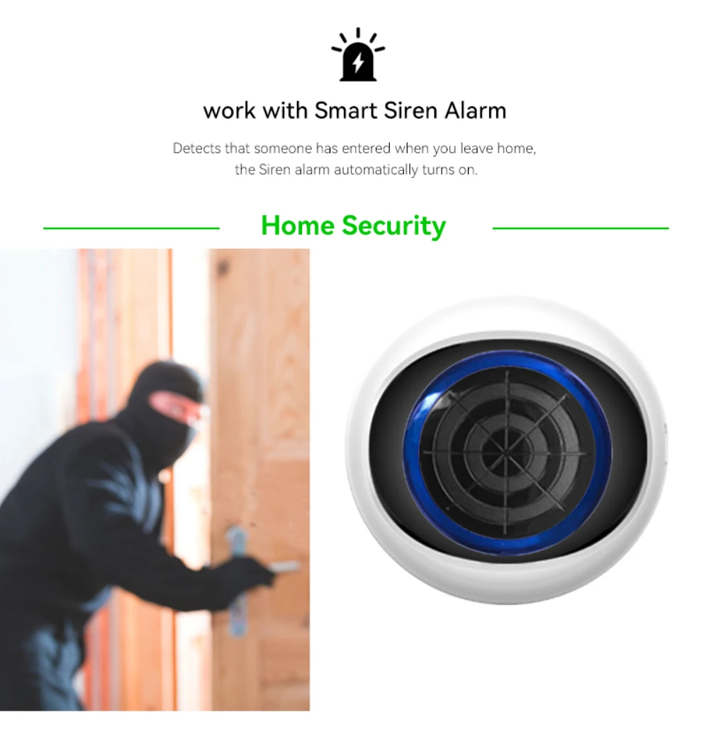 Puede crear escenas inteligentes con interruptores Tuya, lámparas, cortinas y otros productos inteligentes para lograr el ahorro de energía, la protección del medio ambiente, la alarma de seguridad y otras funciones.