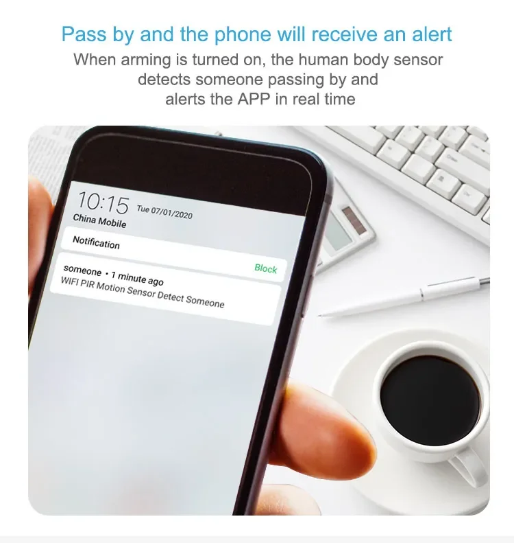 Tuya-Sensor de movimiento PIR inteligente con WIFI, Sensor de movimiento, aplicación Smart Life, sistema de automatización del hogar inalámbrico a través de Alexa y Google Home