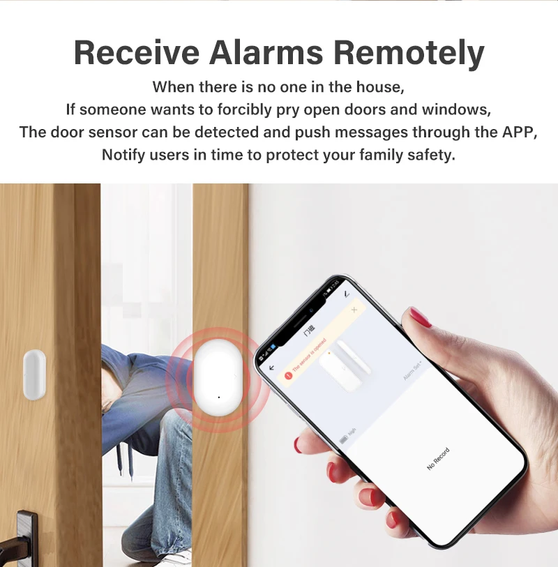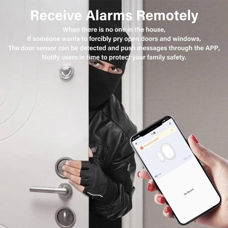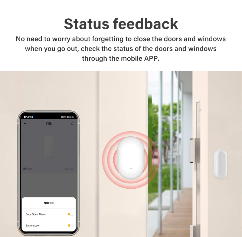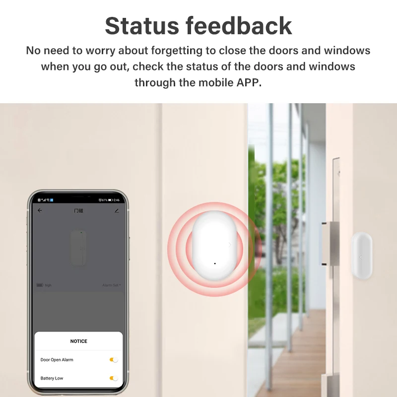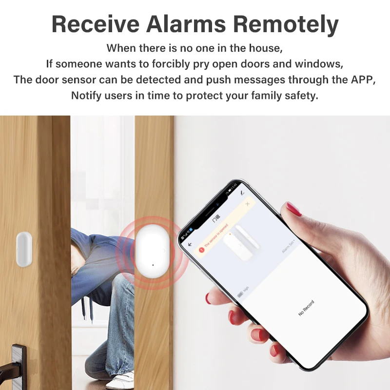 2. Monitoreo remoto en tiempo real: cuando y donde quiera que esté, una vez que el sensor de puerta/ventana detecte objetos externos o animales, recibirá una notificación por teléfono inteligente. Mantenga su casa segura todo el tiempo. Lo que debe hacer es mantener su sensor con el concentrador ZigBee conectado.