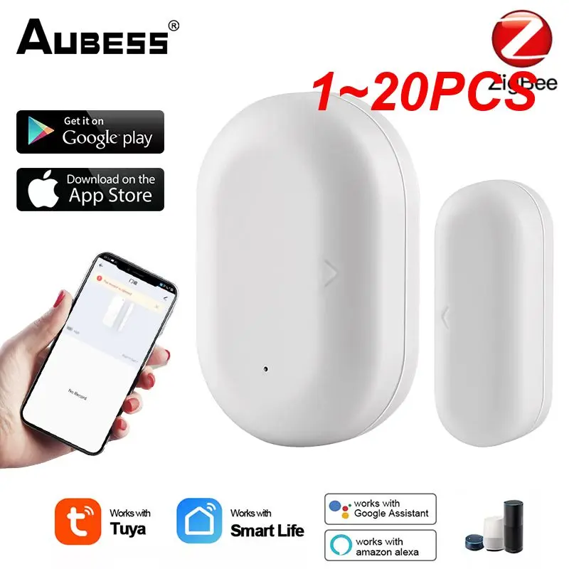 Comprar Sensor de puerta inteligente Tuya ZigBee, Detector remoto abierto/cerrado, sistema de alarma de seguridad, funciona con Alexa, 1 ~ 20 piezas