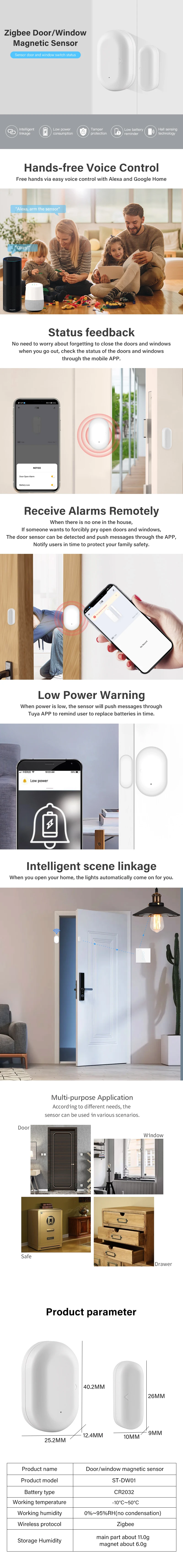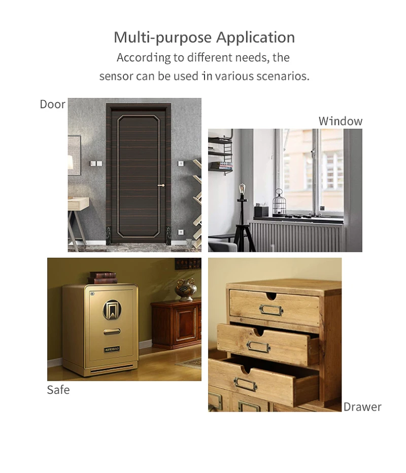 3. Amplias aplicaciones: Aplique el sensor inteligente de puerta/ventana a diferentes escenas, su dormitorio, garaje, baño, jardín y cualquier lugar que desee, mantenga toda su casa alejada del peligro con una conexión del sensor inteligente de puerta/ventana, junto con varios sensores ZigBee con un solo Hub ZigBee requerido. Fácil de integrar en varios entornos.