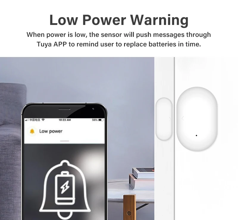 4. Alimentado por batería para un bajo consumo de energía; Nuevo diseño con tecnología de detección de pasillo y protección contra manipulaciones; Recordatorio de batería baja compatible.