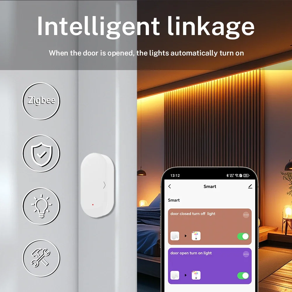 Comprar Sensor de puerta y ventana Zigbee 3,0 Tuya, seguridad del hogar para aplicación Smart Life, Compatible con el asistente de Google Alexa